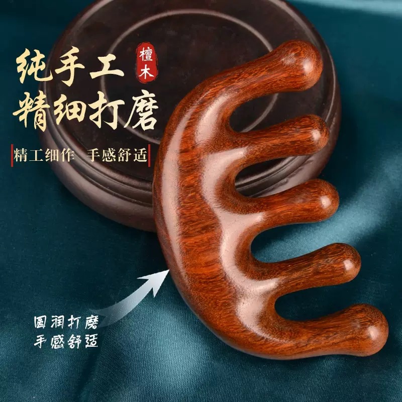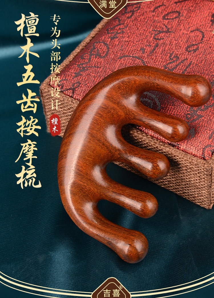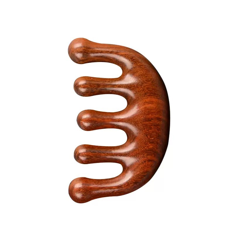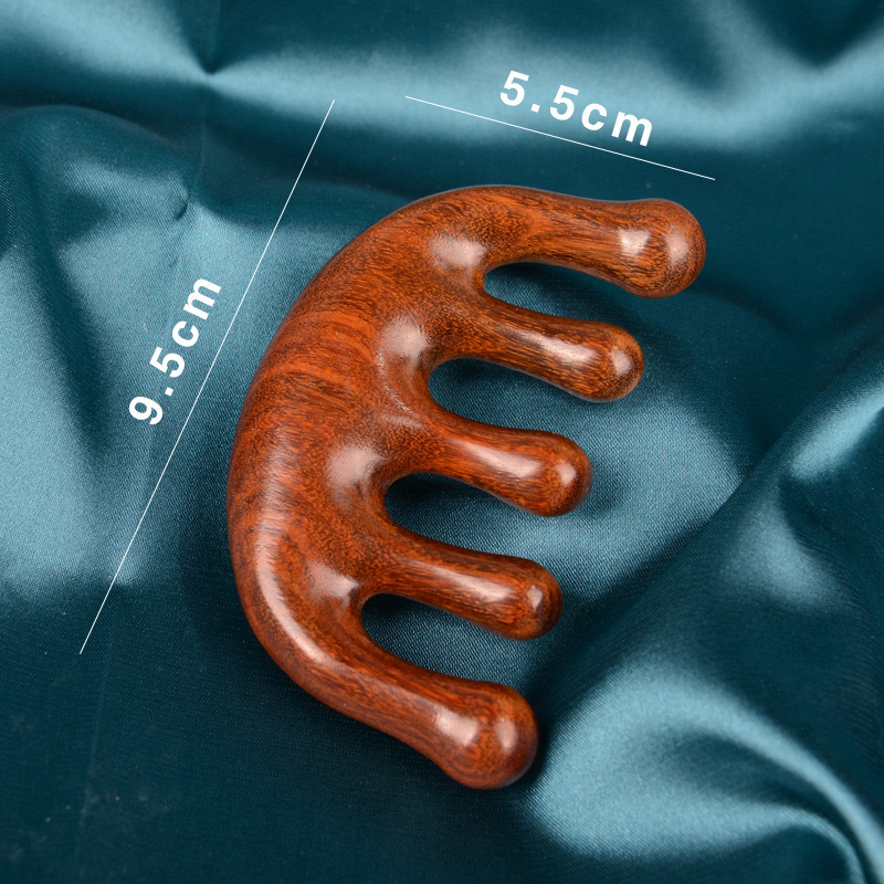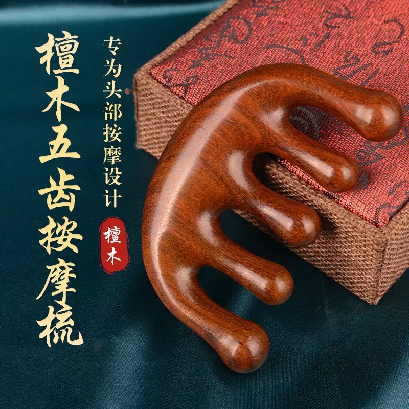 檀木头部五指按摩梳刮痧五齿经络梳子防静电脱发头皮圆头五骨梳