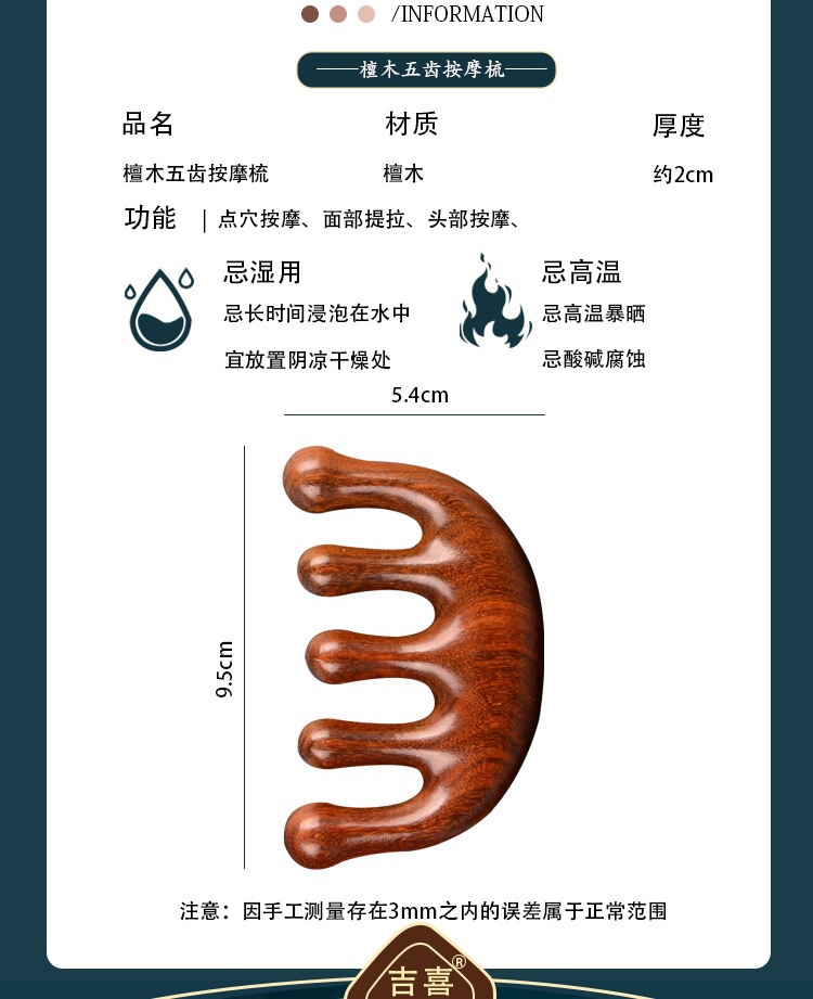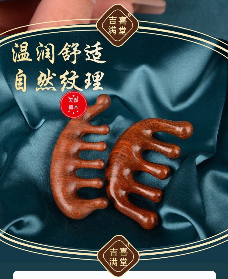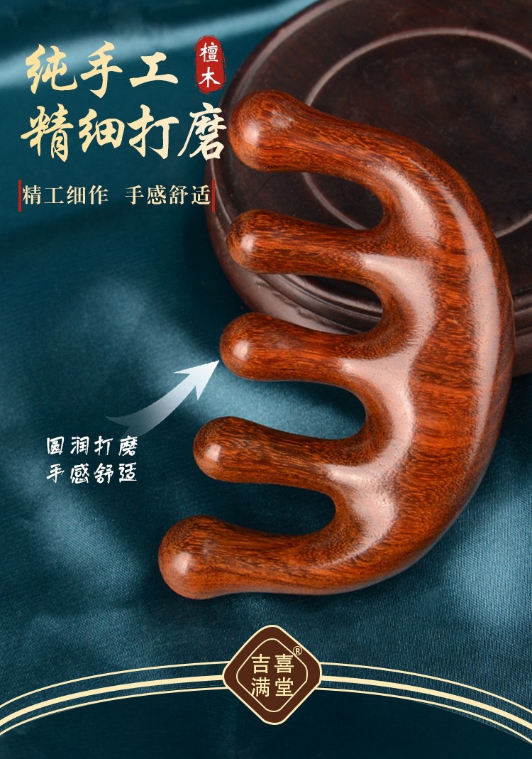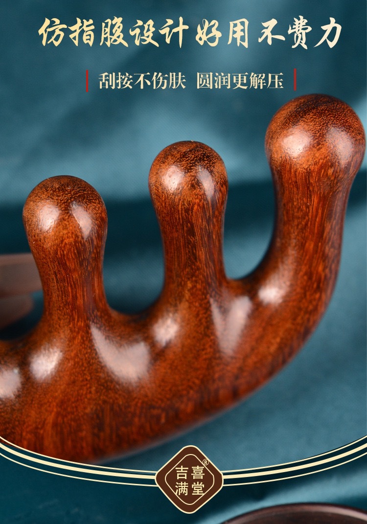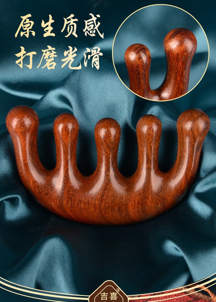 檀木头部五指按摩梳刮痧五齿经络梳子防静电脱发头皮圆头五骨梳