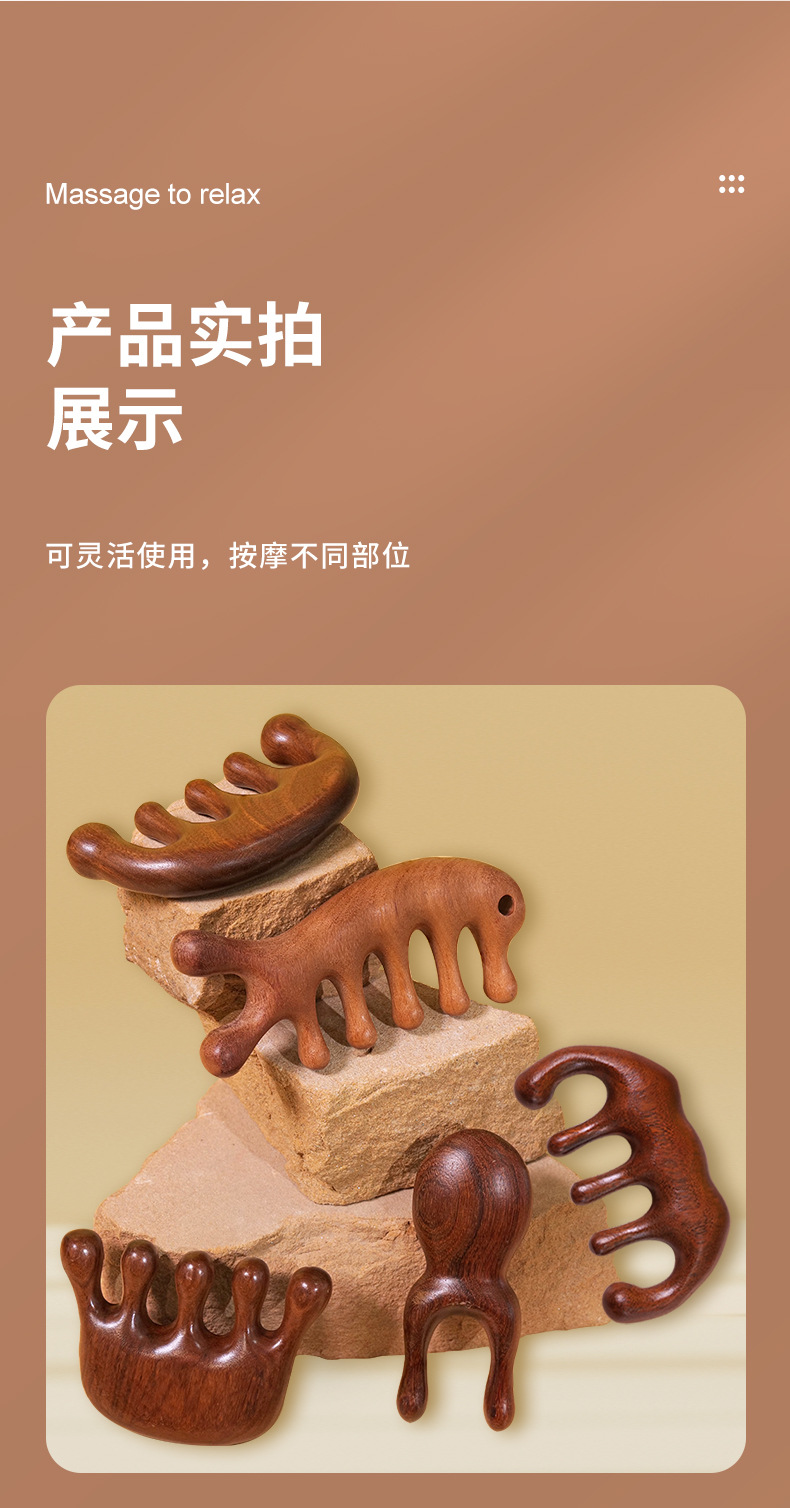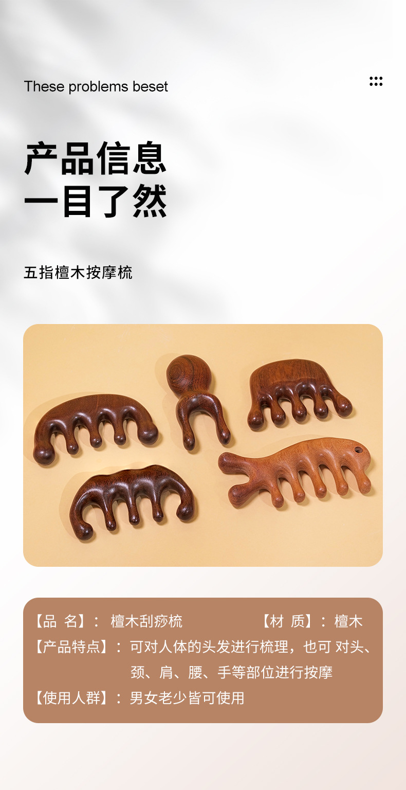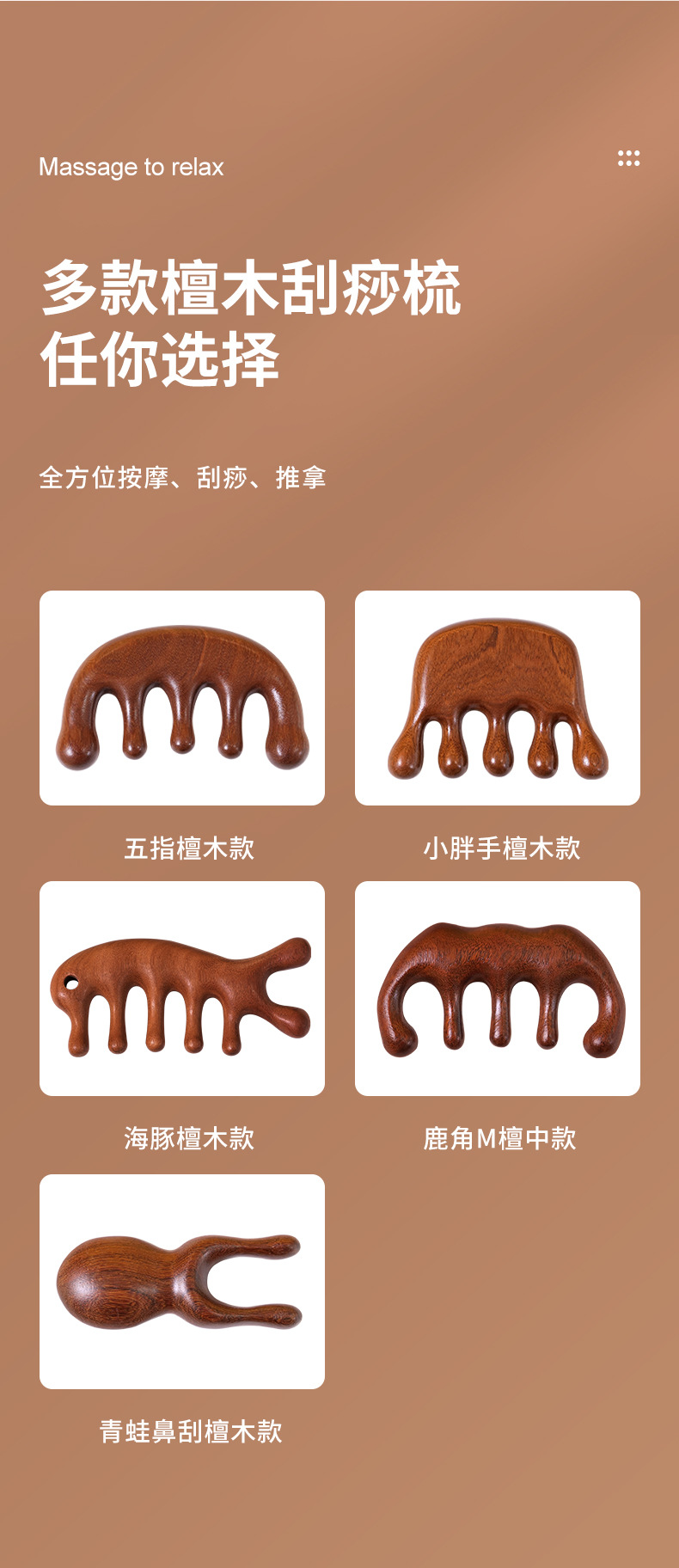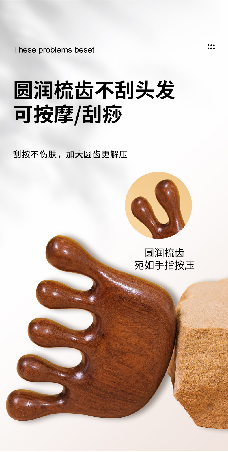 头皮经络按摩梳 多功能头疗梳头部按摩梳子五齿梳头颈按摩刮痧梳
