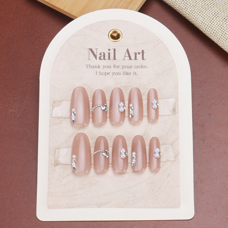 穿戴甲纯手作夏日少女奶油风立体珍珠钻饰甲片法式穿戴式美甲甲片