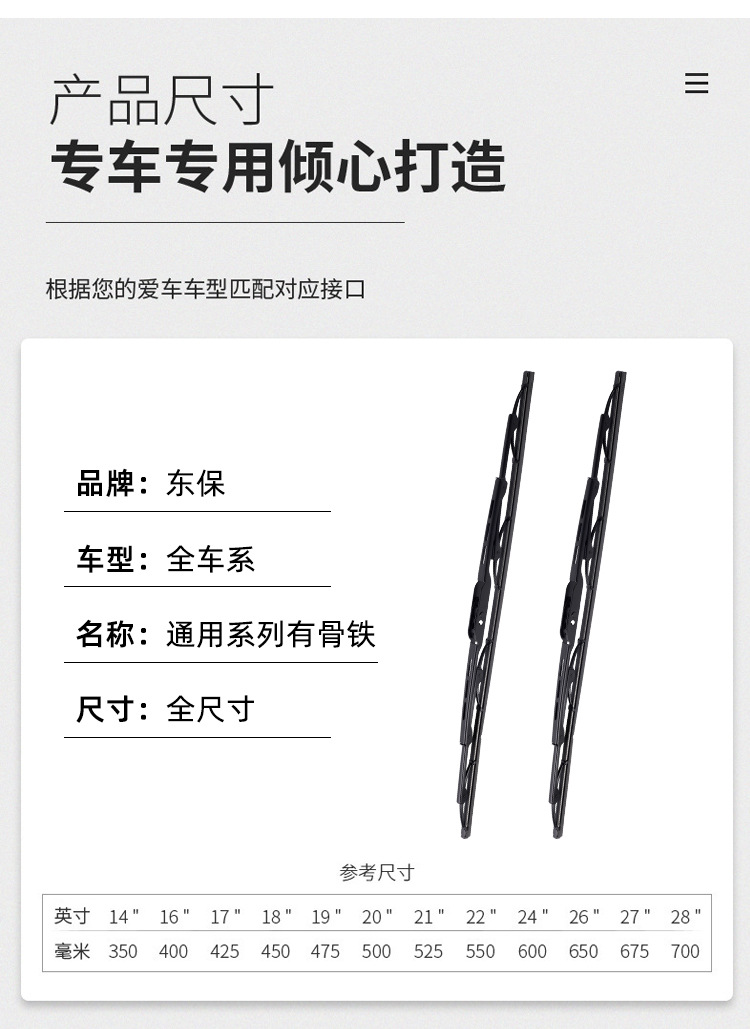 通用U型有骨雨刮器汽车有骨雨刮器铁骨雨刷片客车雨刮器汽车用品