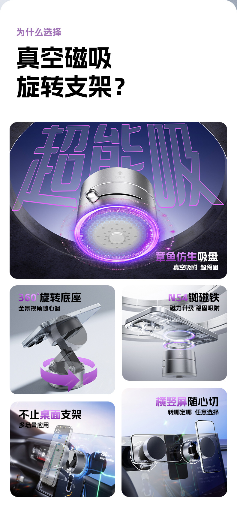 2025新款汽车磁吸真空吸盘手机车载手机支架车载磁吸手机支架导航