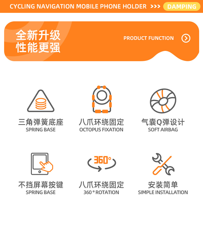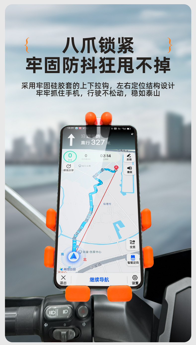摩托车电动车自行车手机支架 气囊防震外卖固定导航八爪手机支架