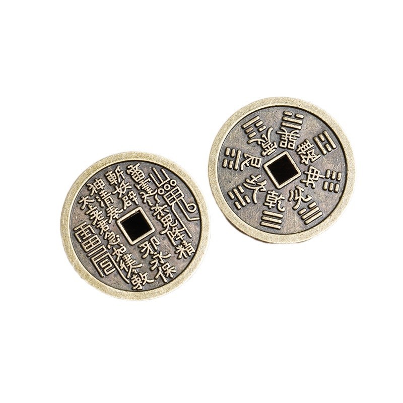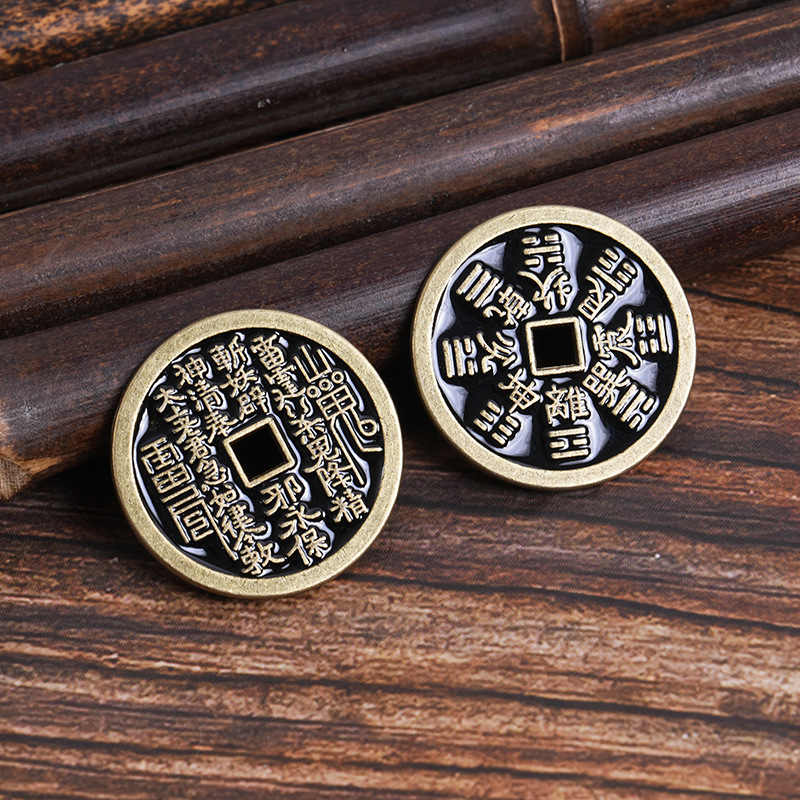 厂家批发仿黄铜山鬼花钱钥匙扣配件 朱砂红仿古钱币 八卦铜钱吊坠