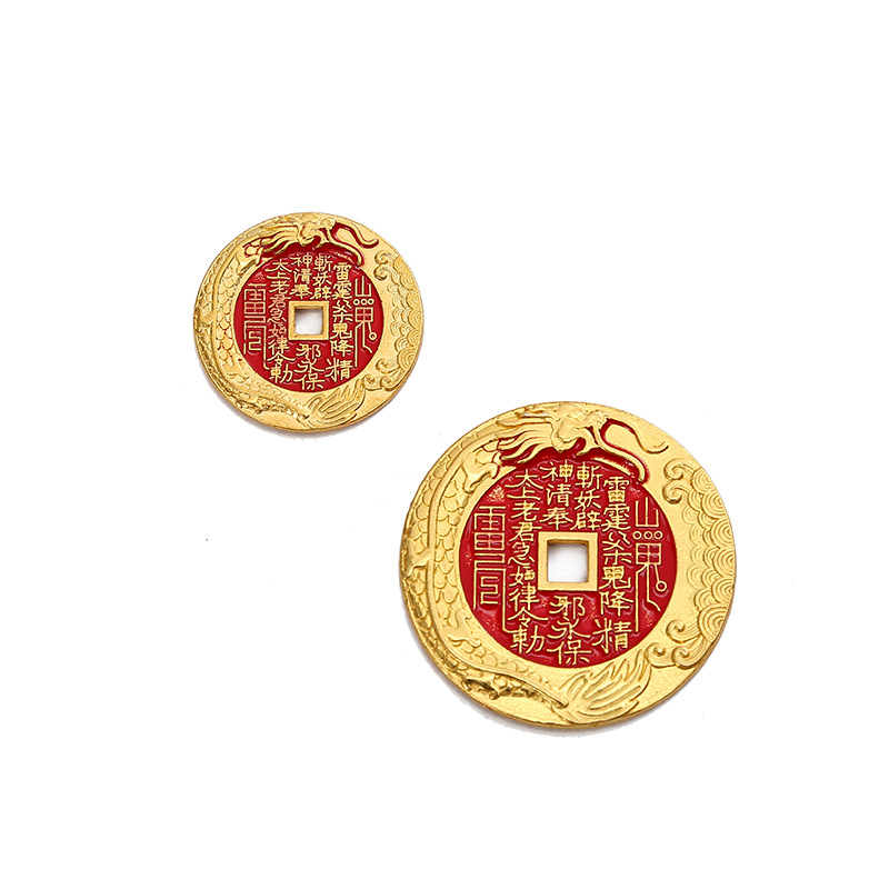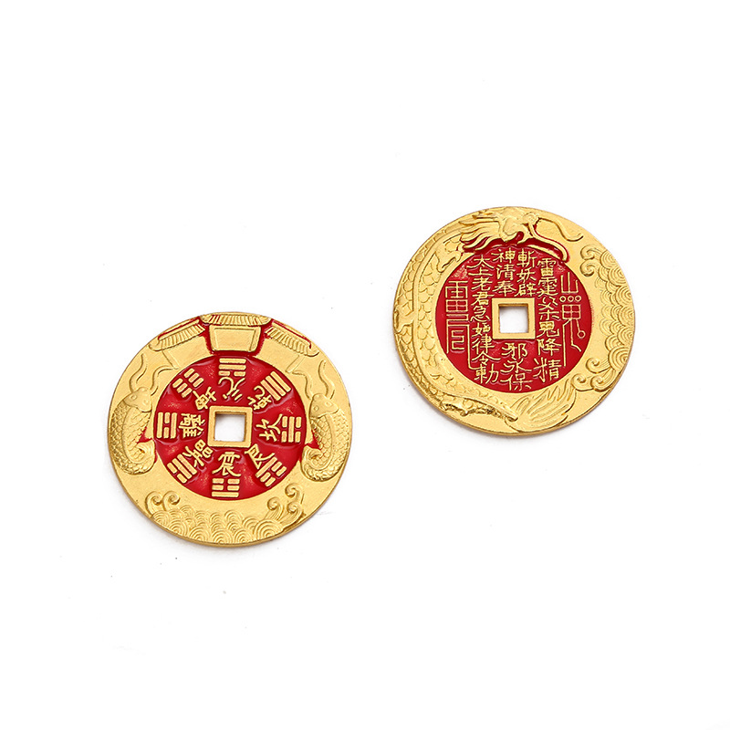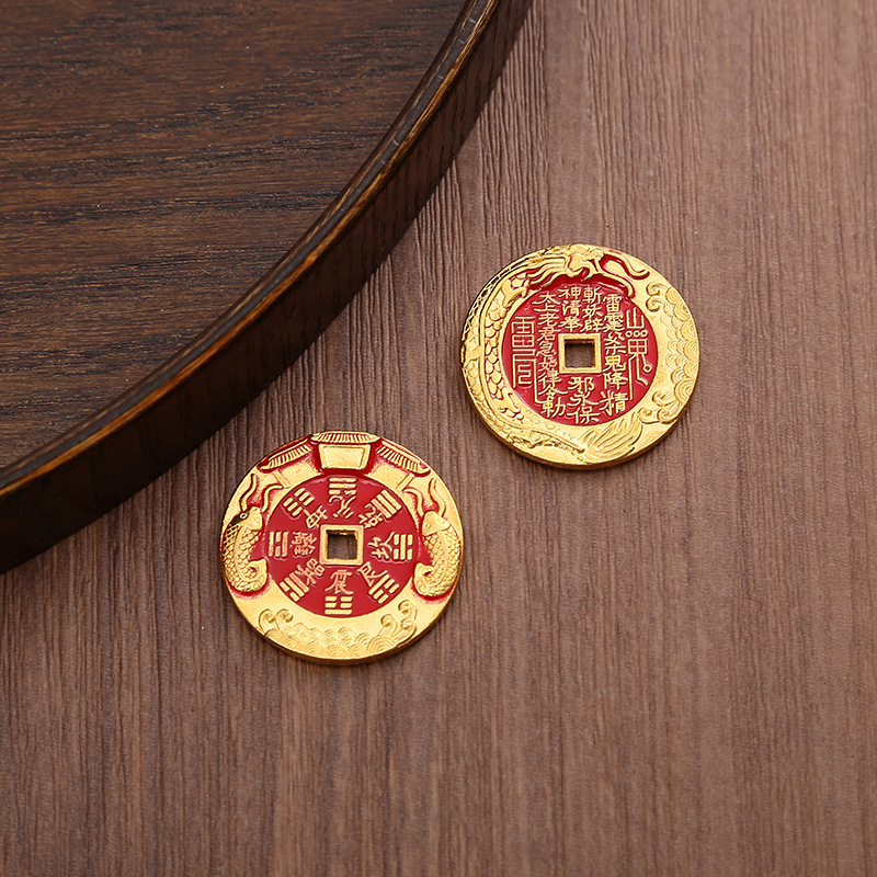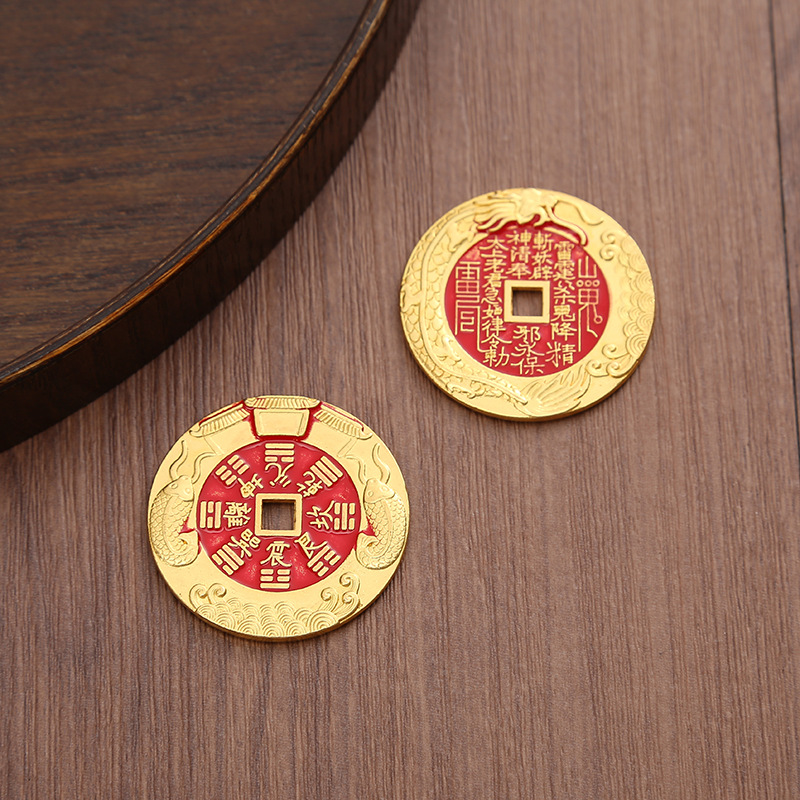 朱砂山鬼花八卦铜钱吊坠 合金滴油鱼跃龙门精美摆件 红油八卦挂件