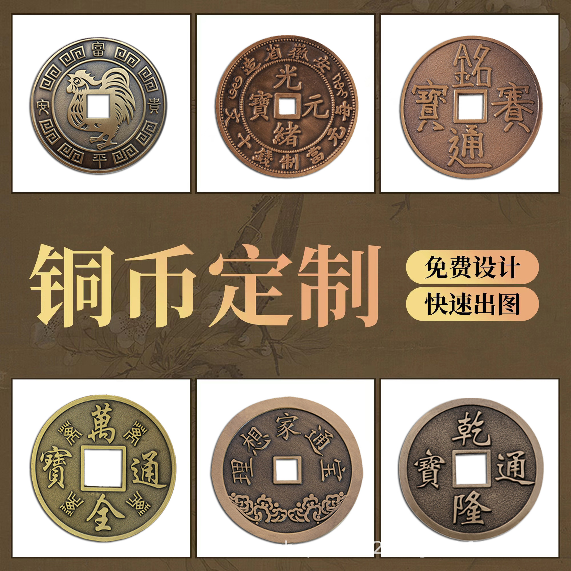 铜钱定制旅游景区做旧仿古铜币寺庙道观许愿纪念代币来图订制定做
