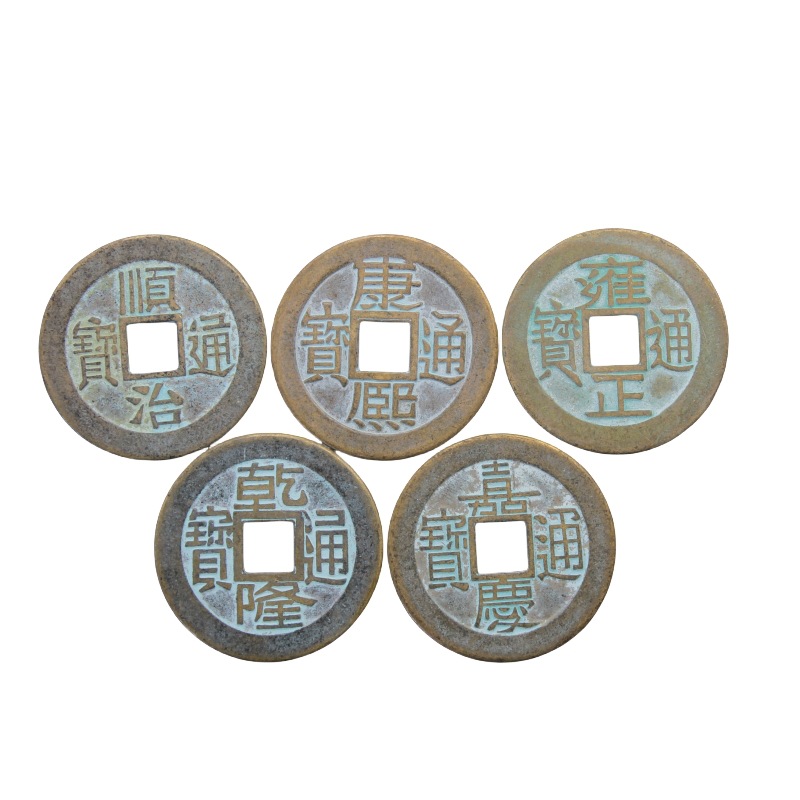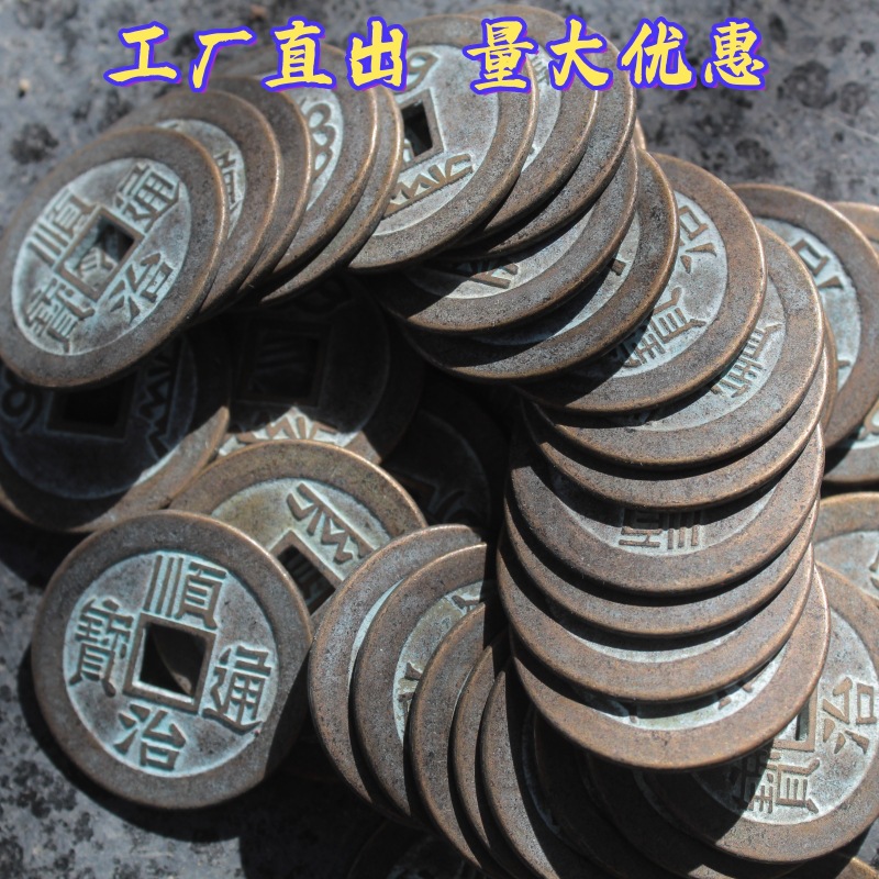 五帝钱仿古老铜钱纯黄铜压门槛镇宅古代钱币批发六帝钱乾隆通宝