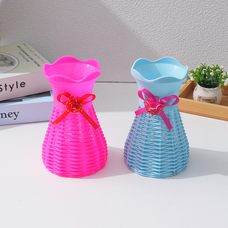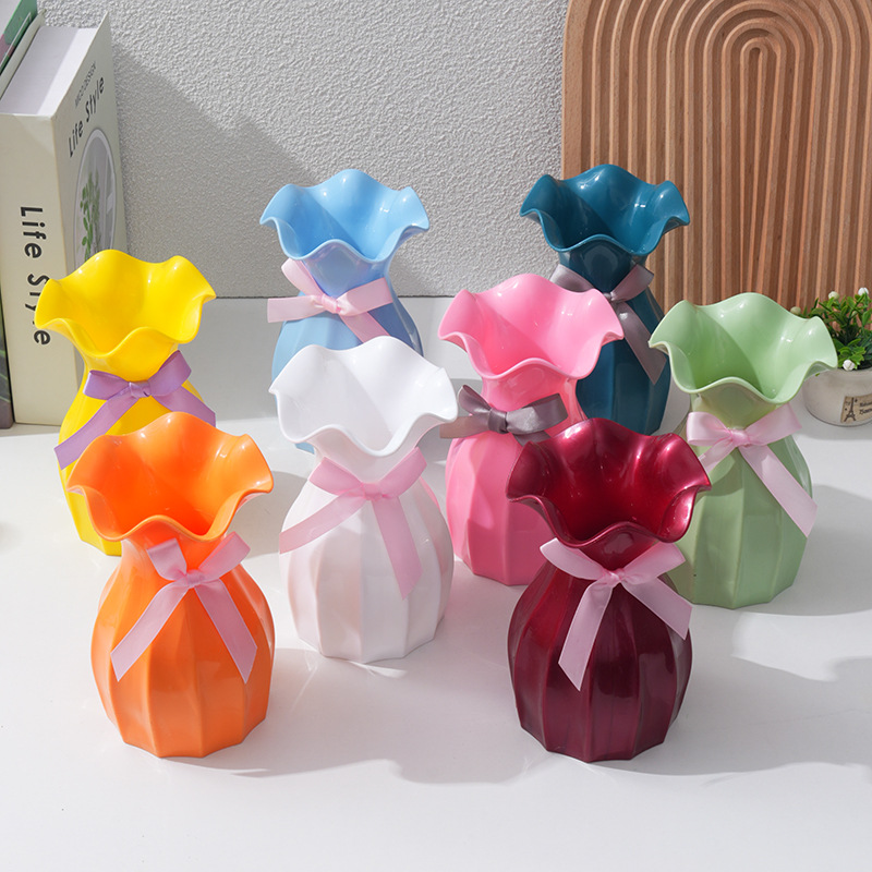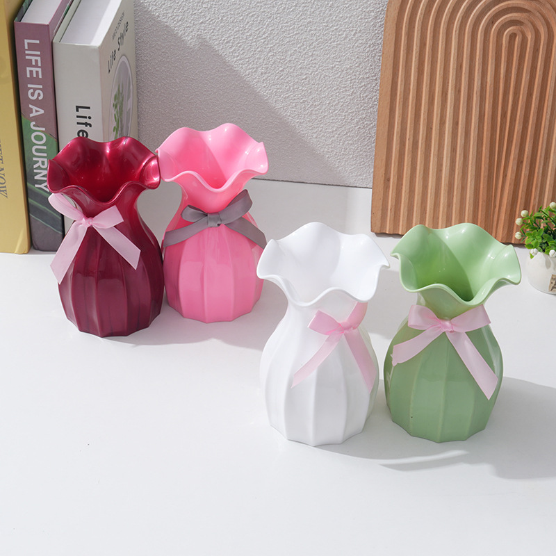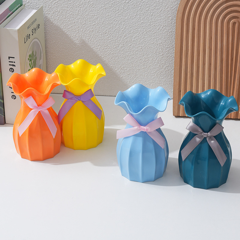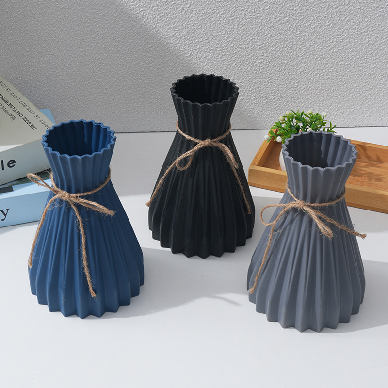 亚马逊跨境北欧ins简约风创意菠萝瓶客厅插花摆件水波纹塑料花瓶