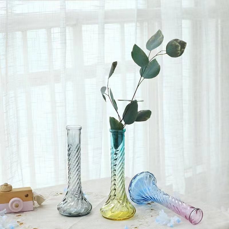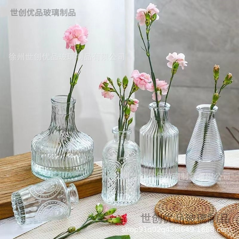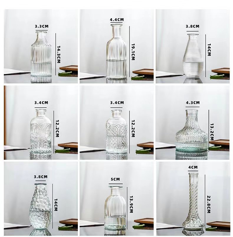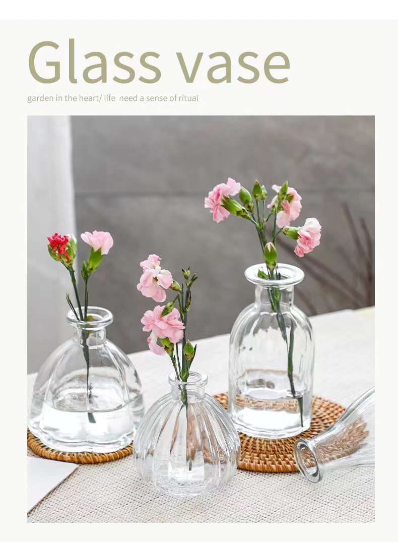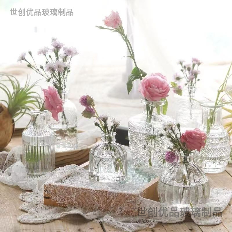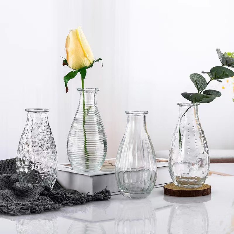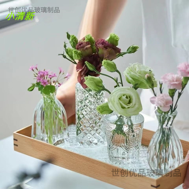 定制简约风透明小口玻璃花瓶鲜花干花花瓶办公室客厅家居装饰摆件