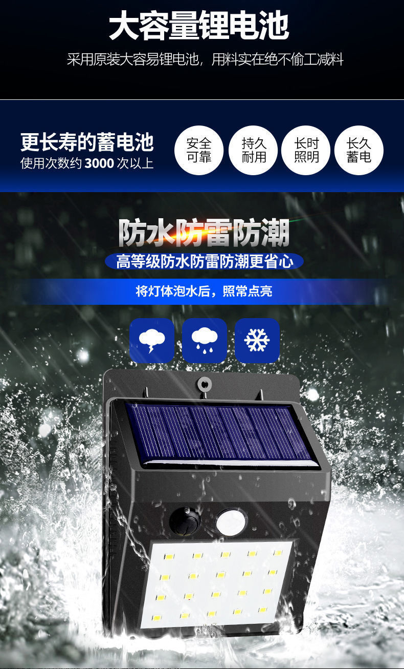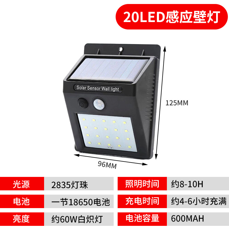 太阳能壁灯户外庭院灯LED人体感应农村改造防水壁灯户外家用路灯