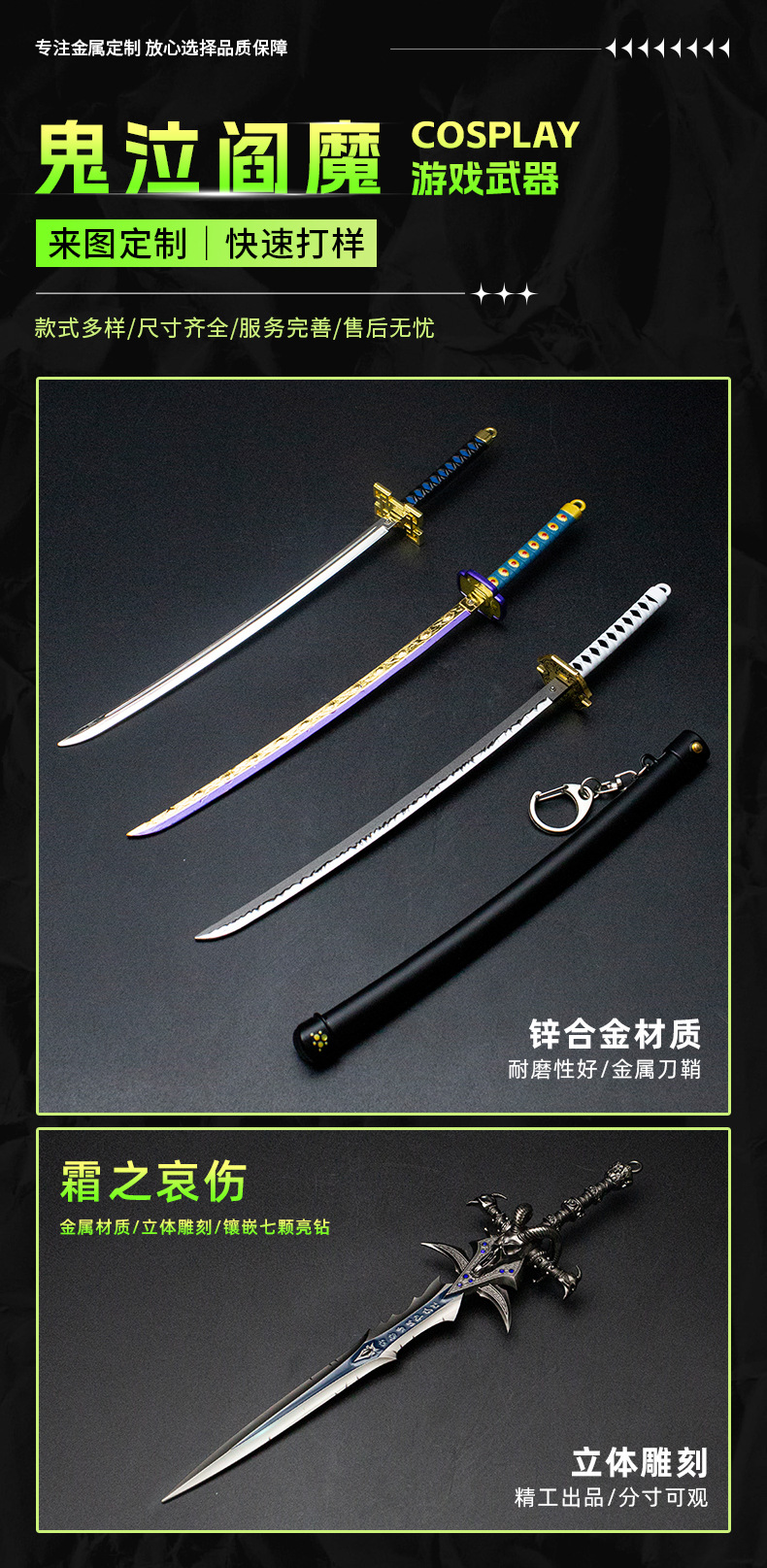 厂家直销跨境货源死神动漫周边武器模型带鞘金属刀剑工艺品摆件