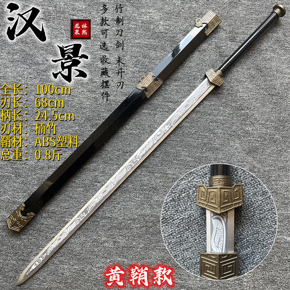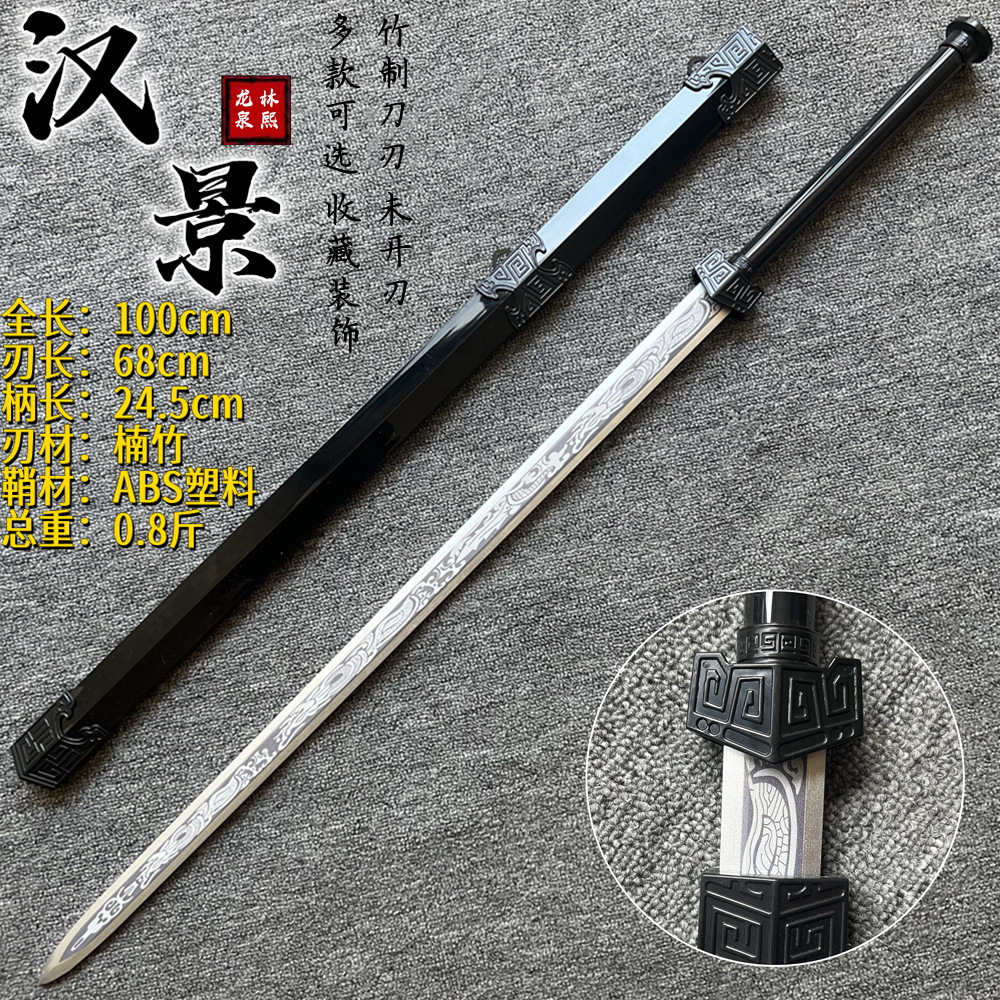 古风宝剑唐横刀木刀带鞘汉剑竹刀双手剑道具武士刃练习玩具实木剑