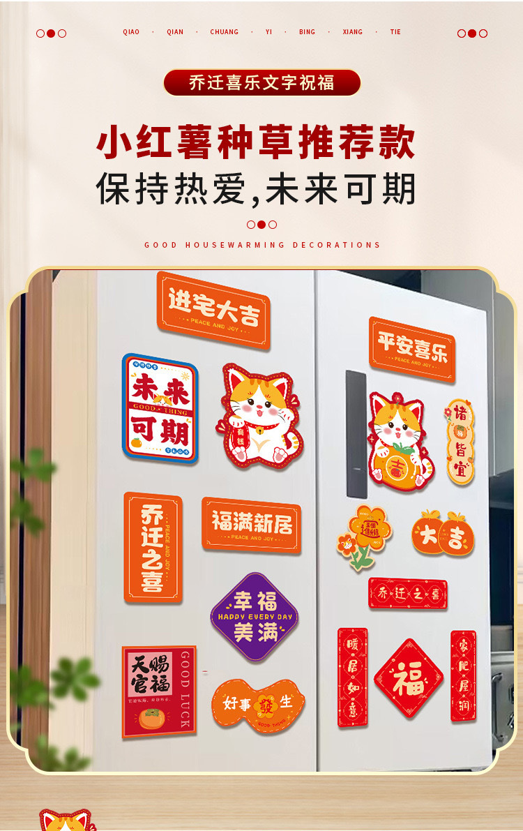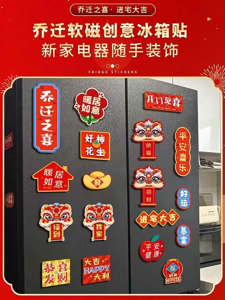 乔迁之喜新居装饰布置磁吸冰箱贴2023新款搬新家入宅仪式用品