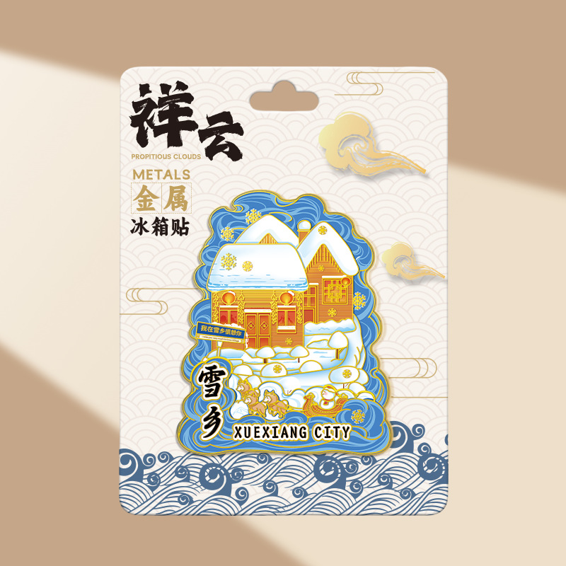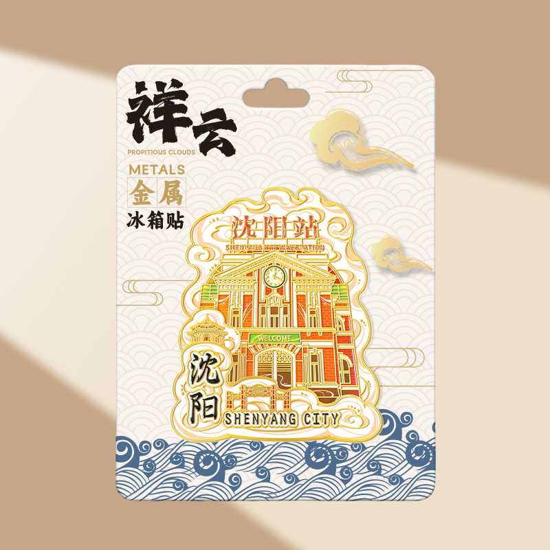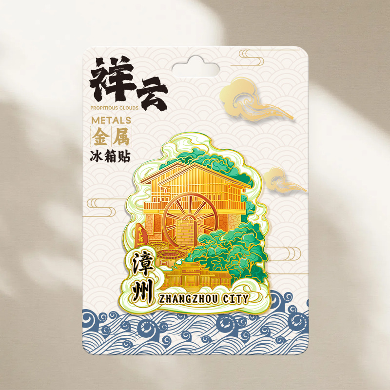 现货厂家小红书抖音爆款城市金属冰箱贴祥云款景区软磁旅游纪念品