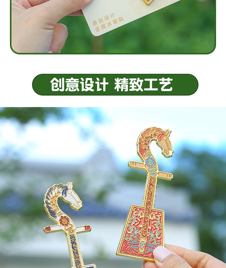 内蒙古马头琴旅游金属冰箱贴城市内蒙古草原文创品浮雕立体纪念品
