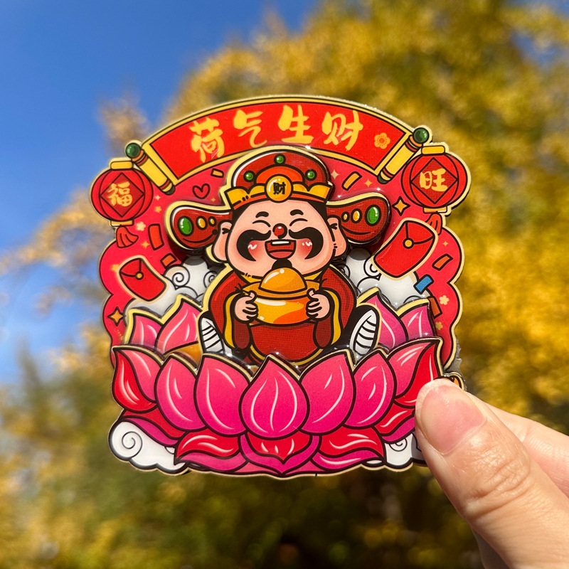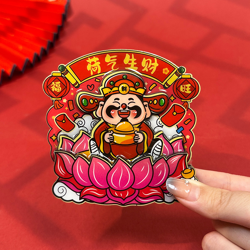 立体财神爷冰箱贴新年春节可爱卡通喜庆入户门装饰贴创意磁性贴饰