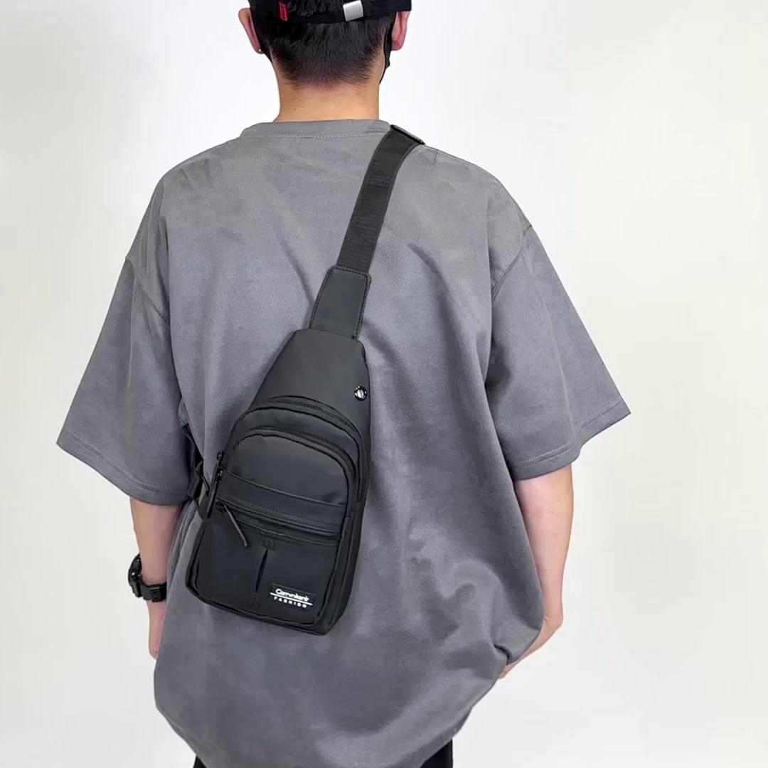 外贸潮牌男士机能斜挎包防泼水多功能胸包男轻便机车潮酷单肩包