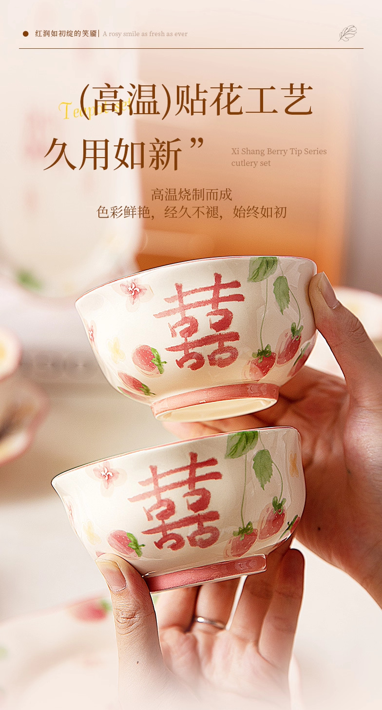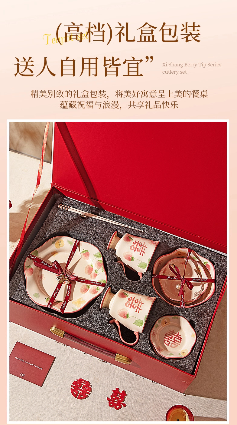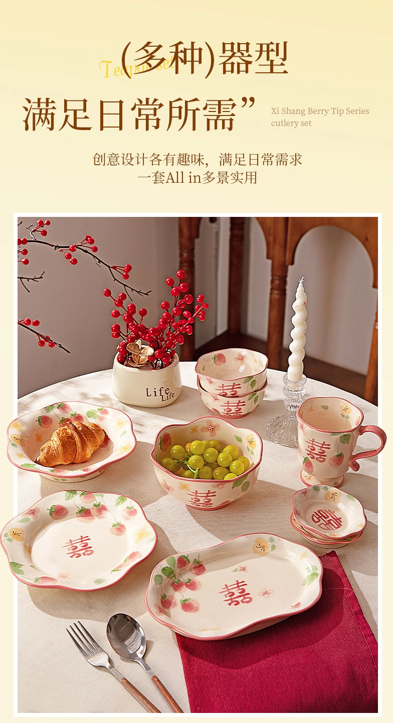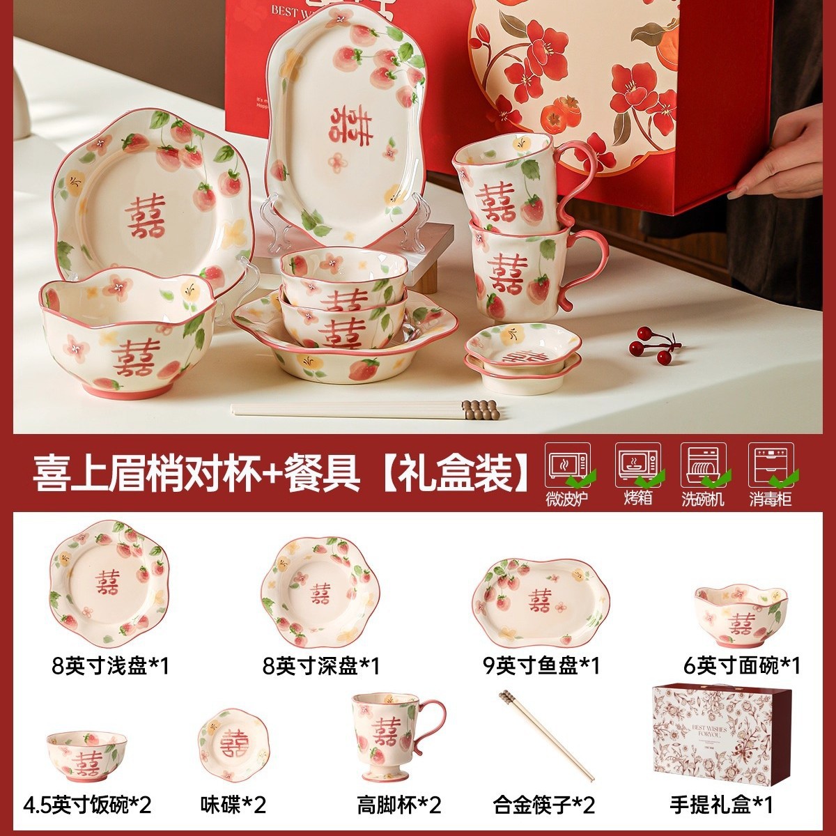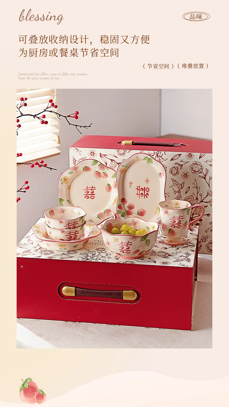 喜庆新婚陶瓷餐具套装碗碟盘家用2025新款乔迁订婚结婚礼物送新人