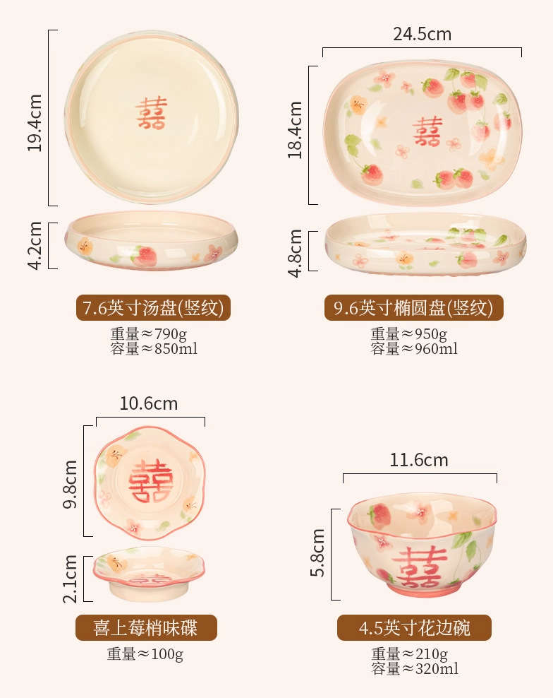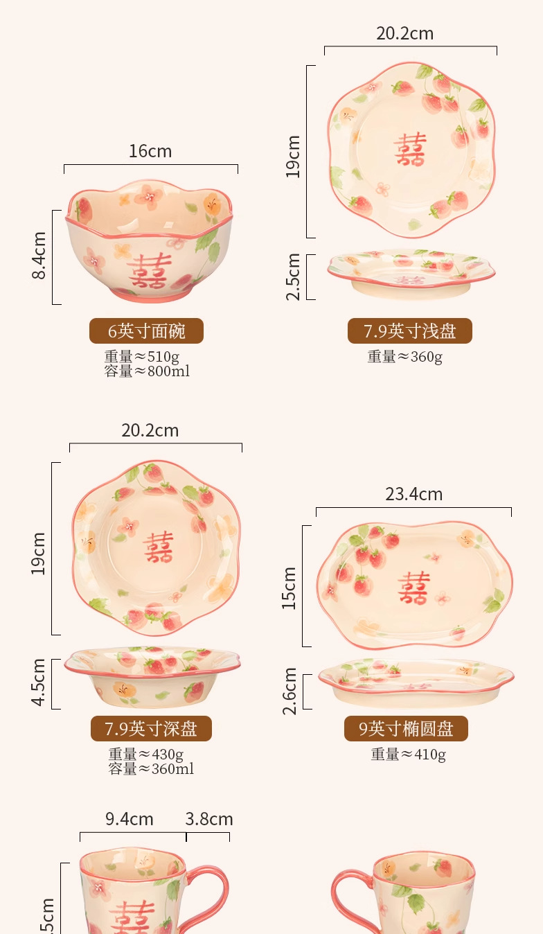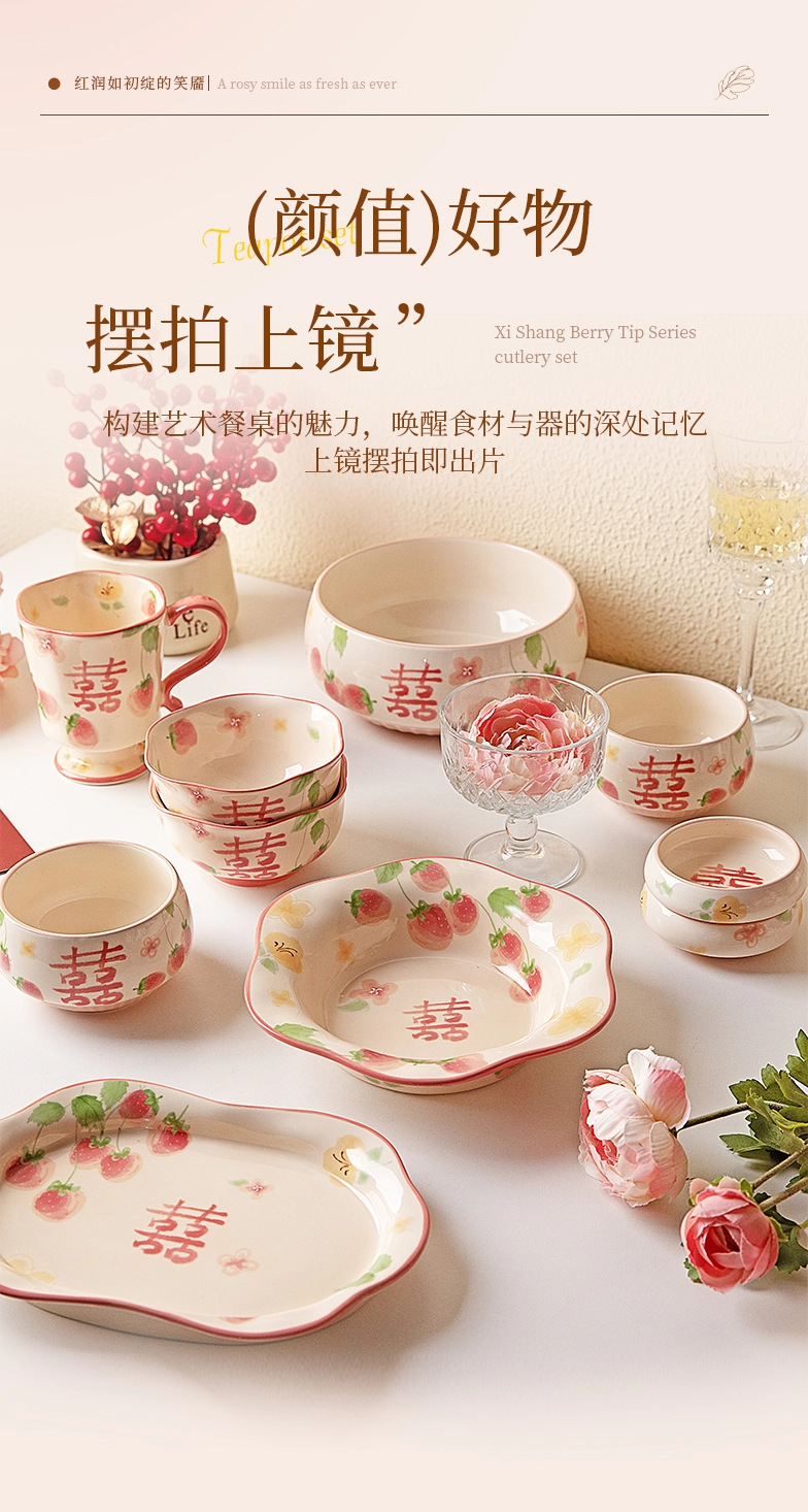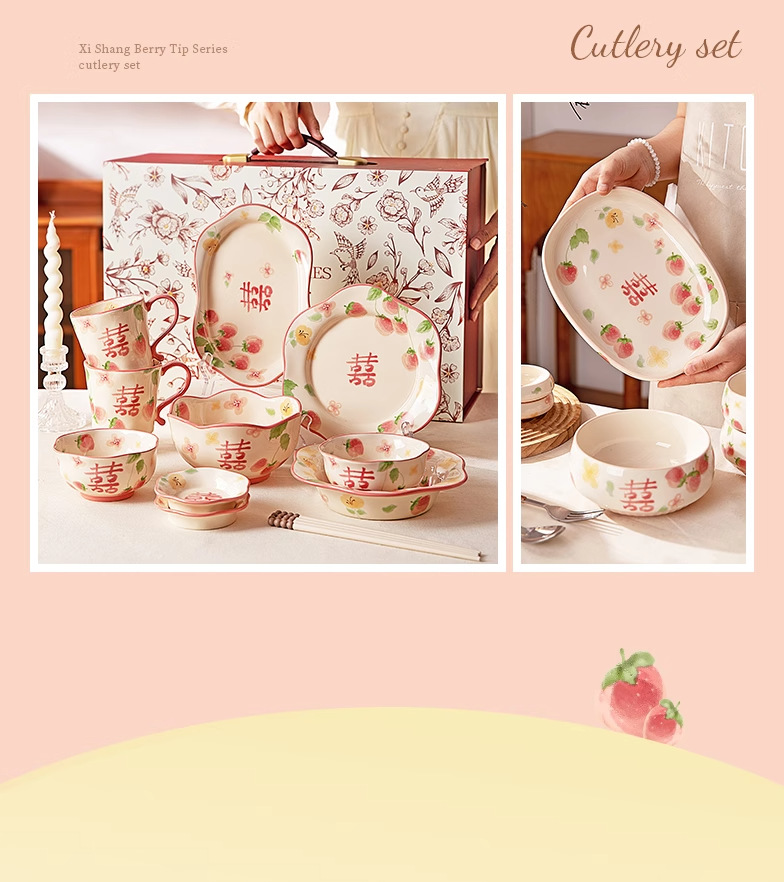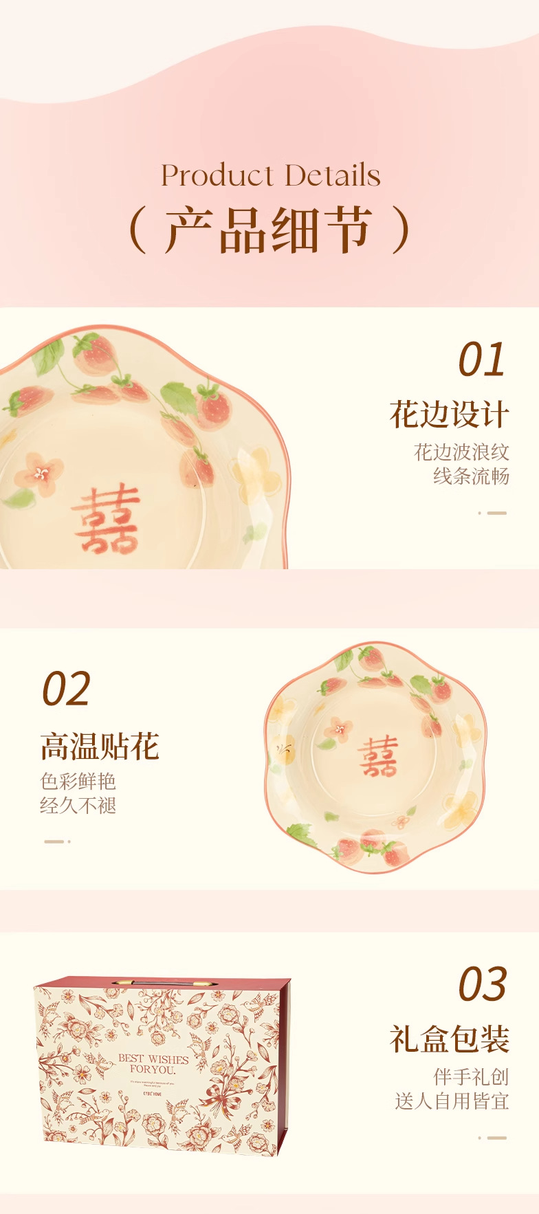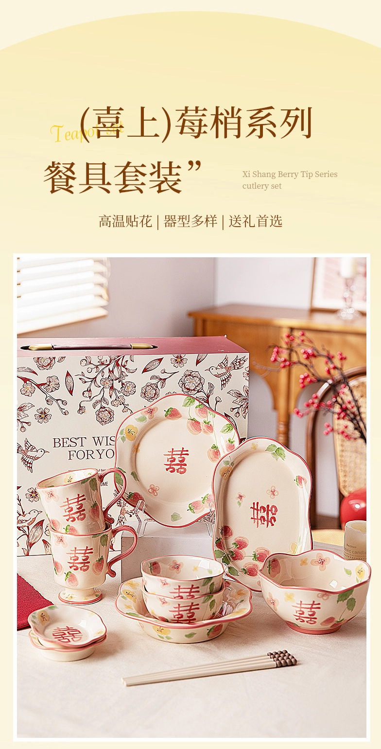 喜庆新婚陶瓷餐具套装碗碟盘家用2025新款乔迁订婚结婚礼物送新人