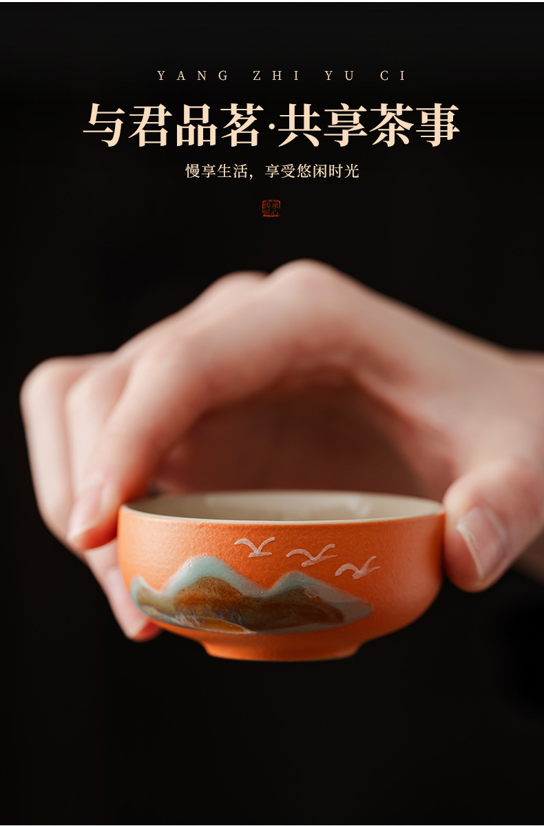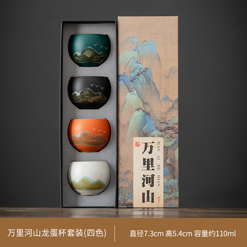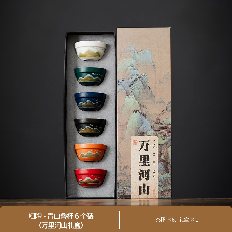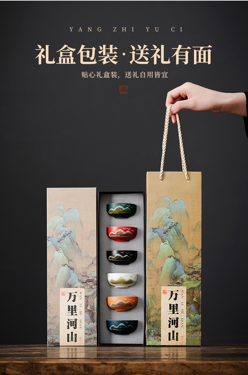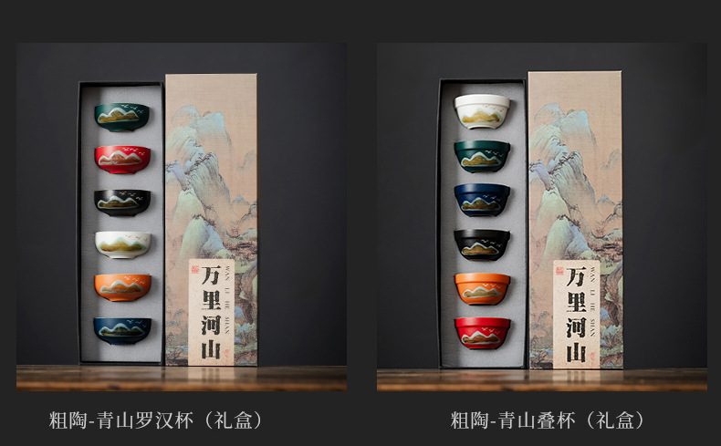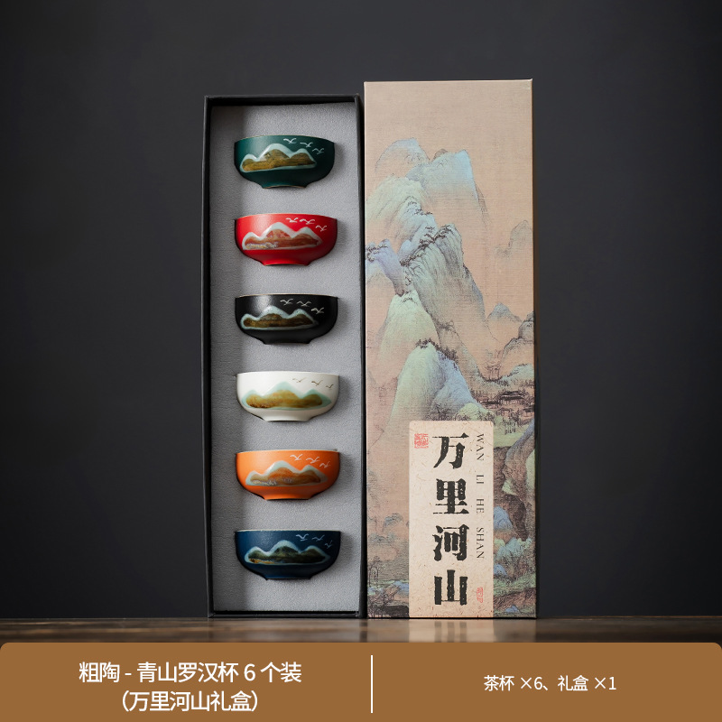 国潮文创粗陶陶瓷茶杯品茗杯主人杯功夫茶具定制礼盒装企业伴手礼