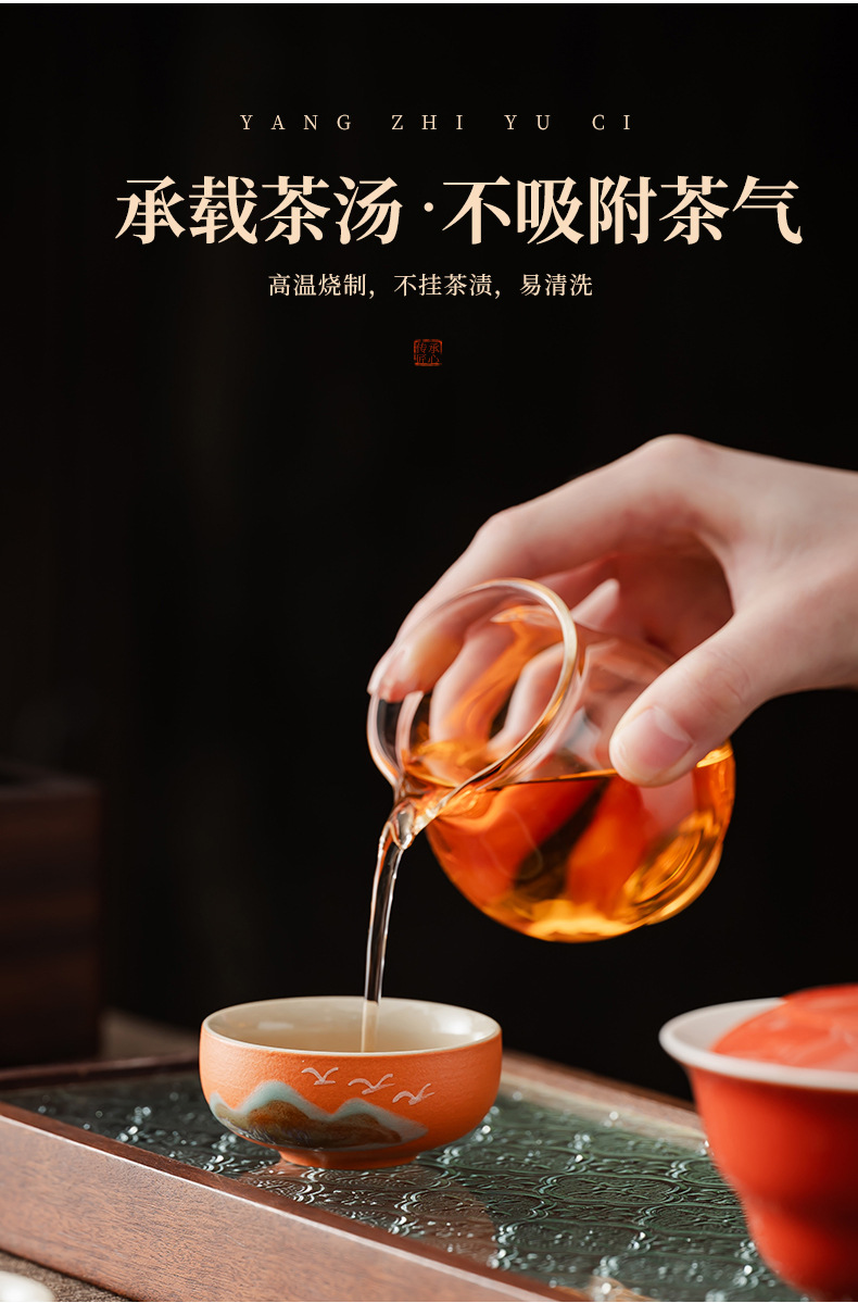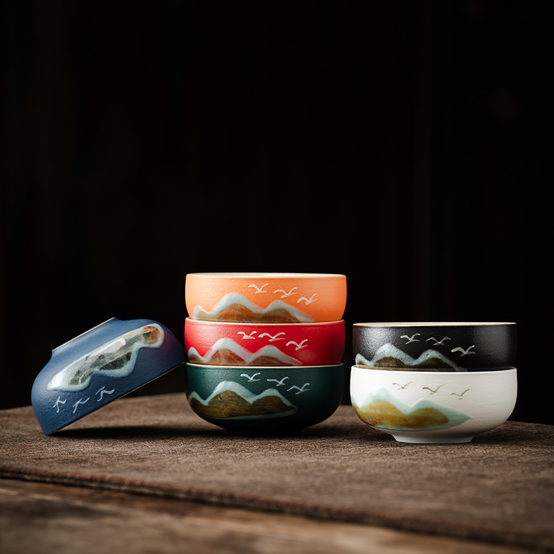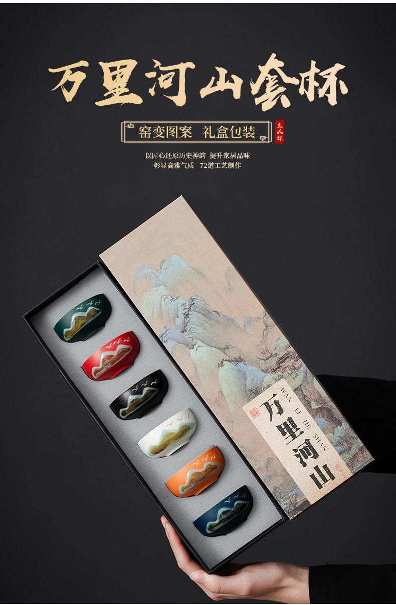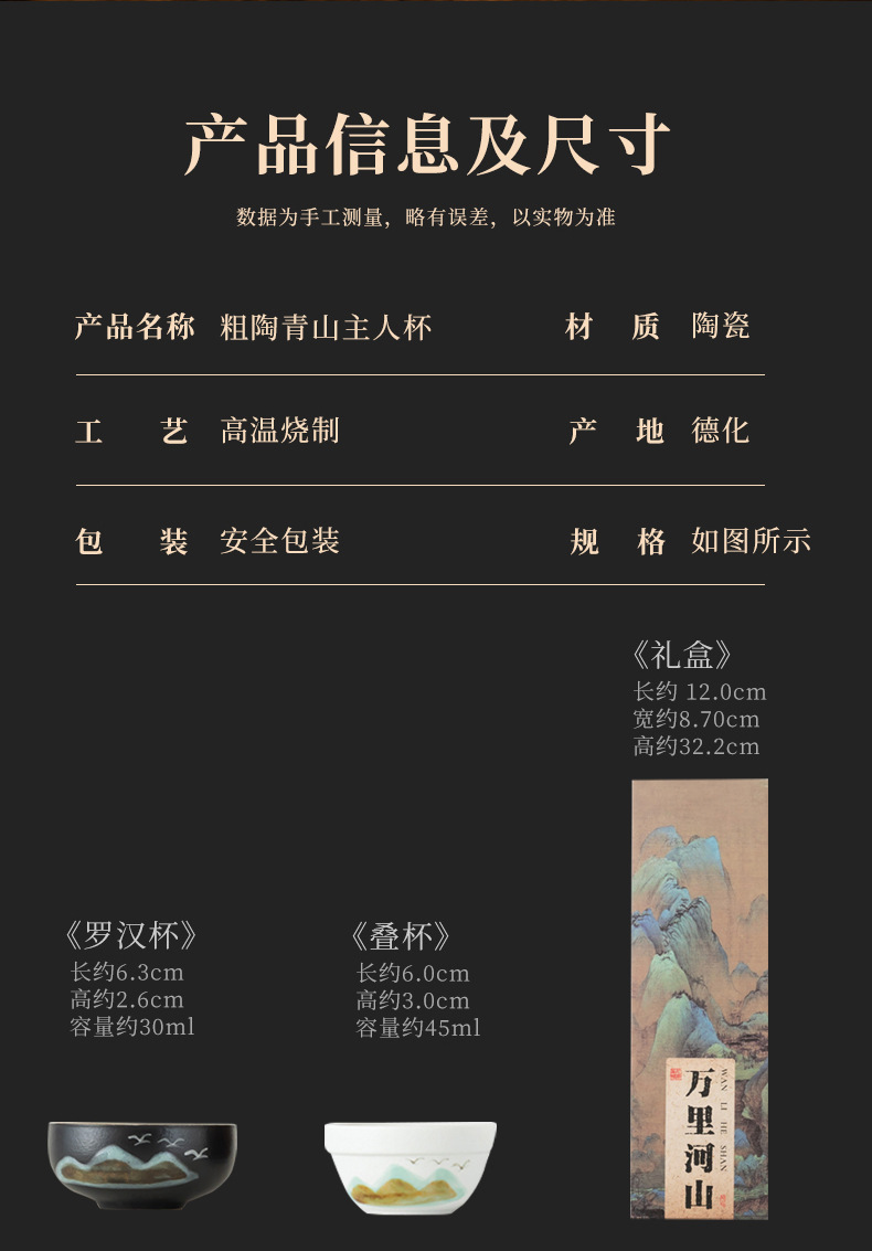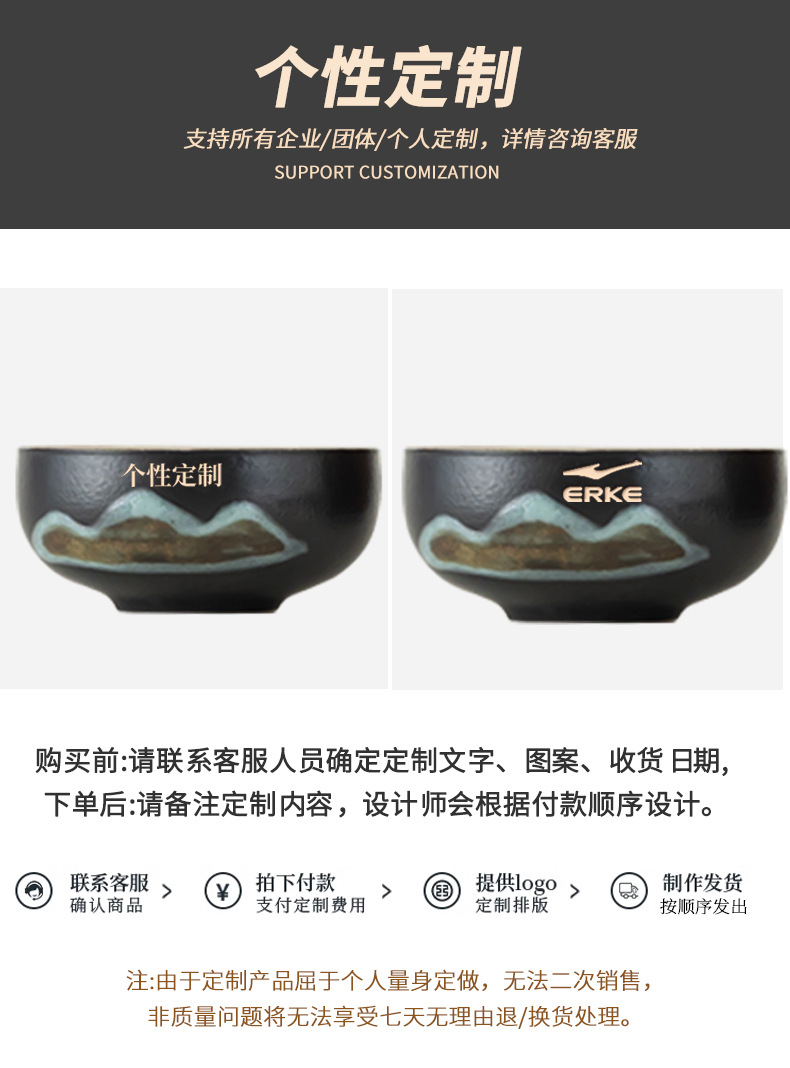 国潮文创粗陶陶瓷茶杯品茗杯主人杯功夫茶具定制礼盒装企业伴手礼