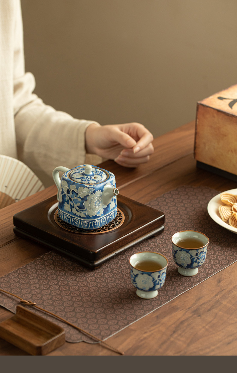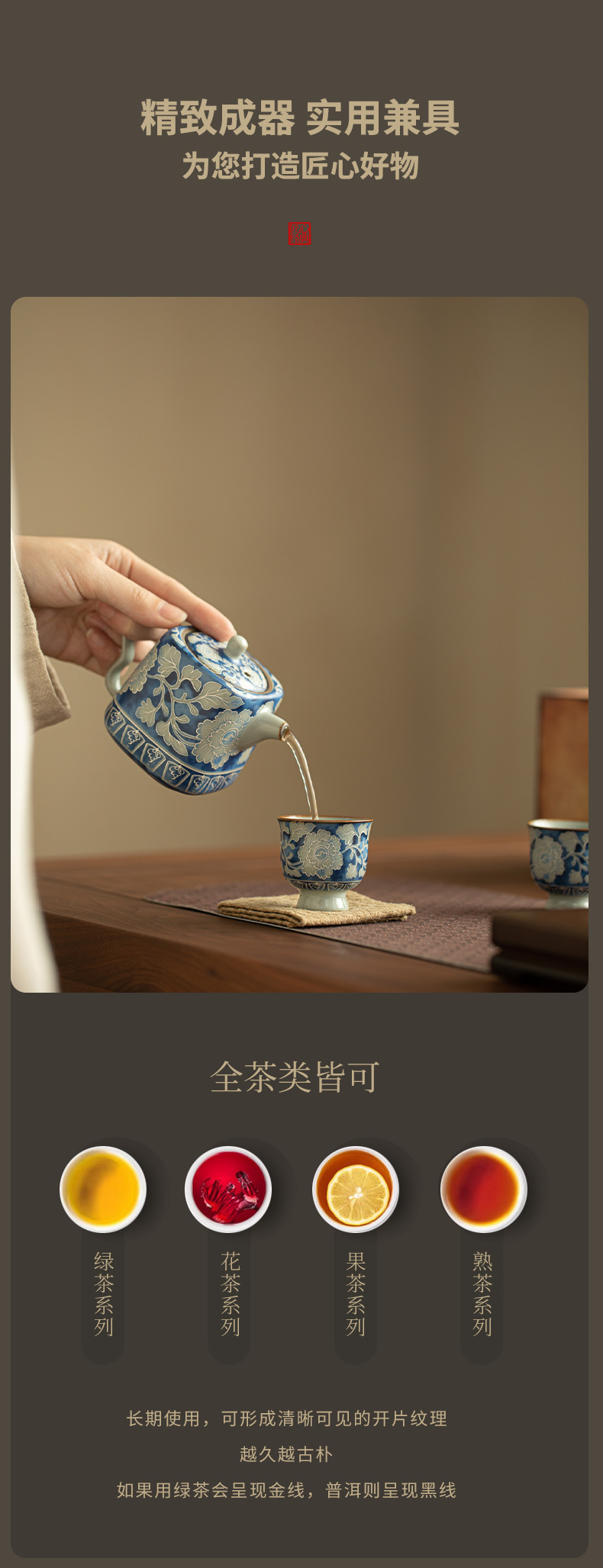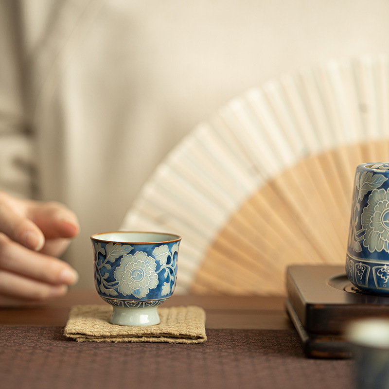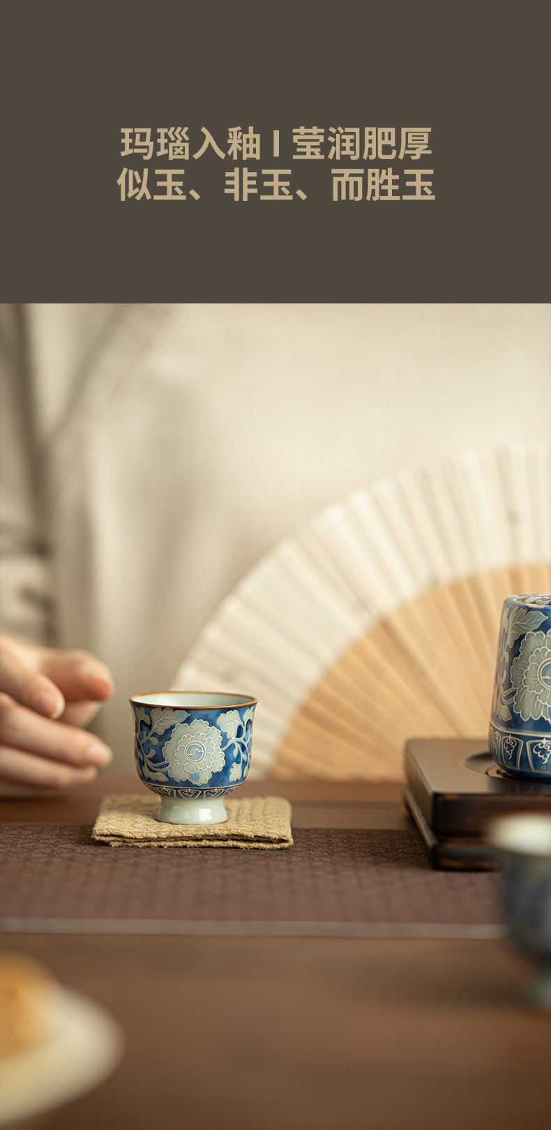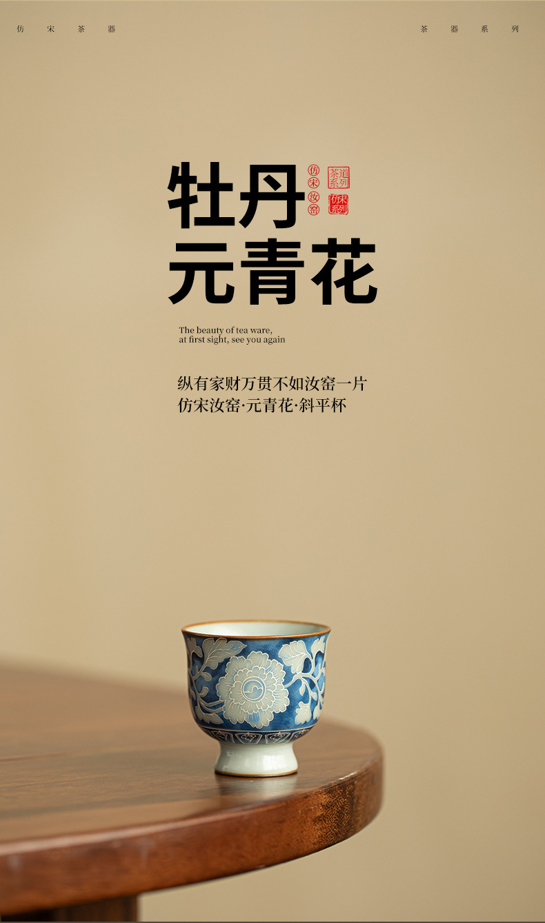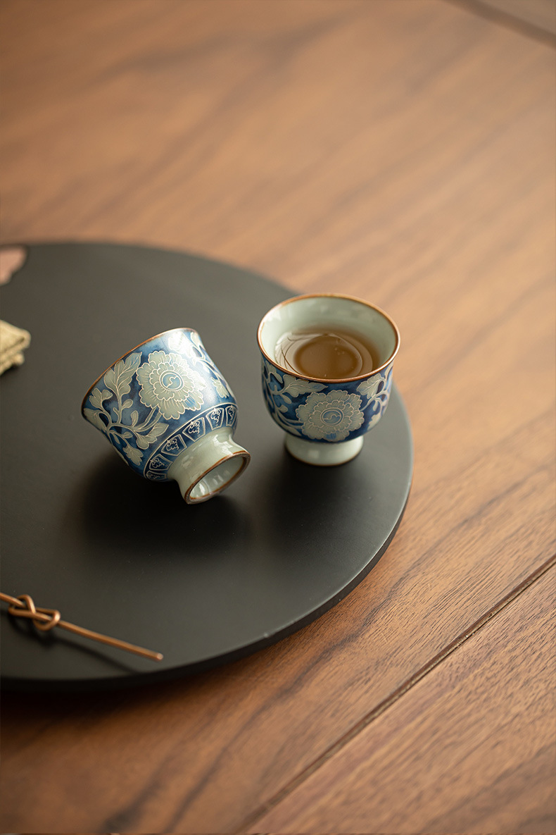 仿宋汝窑元青花茶杯主人杯客杯陶瓷茶具高脚杯开片可养牡丹品茗杯