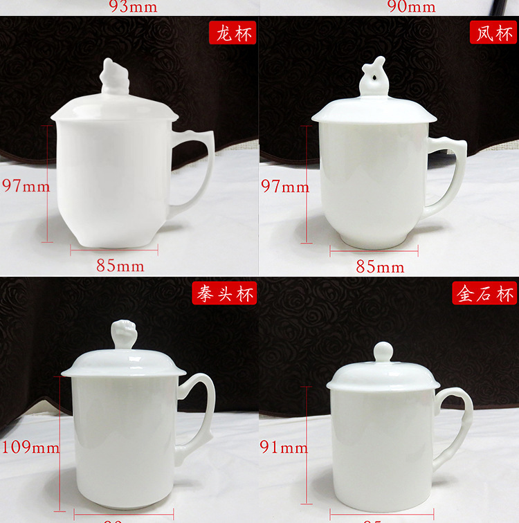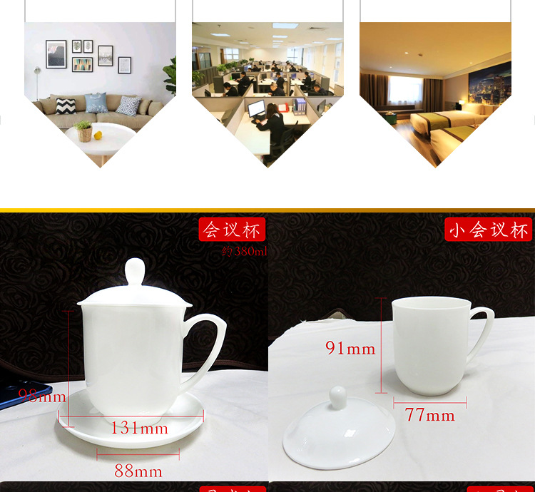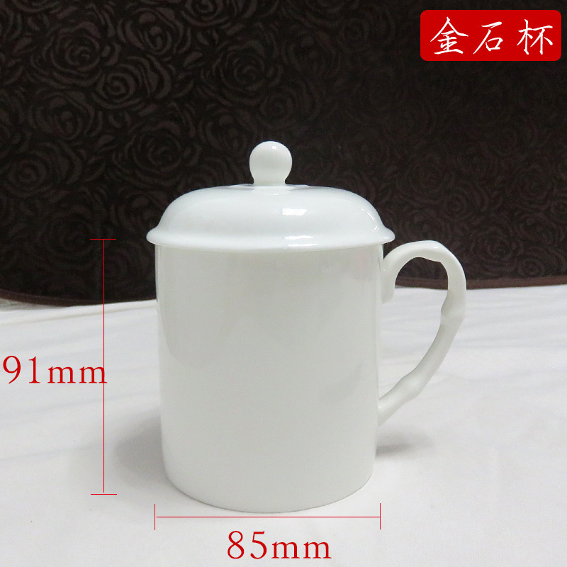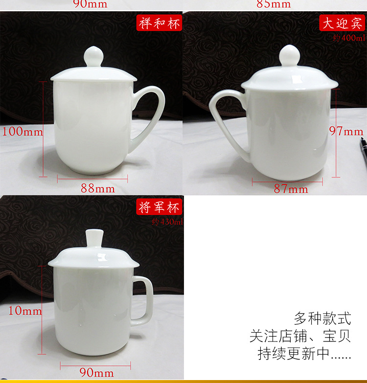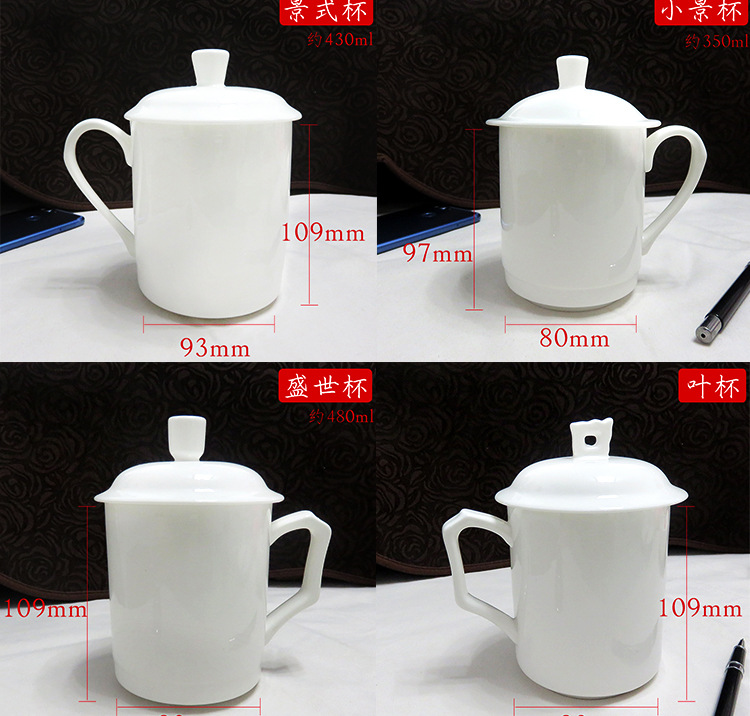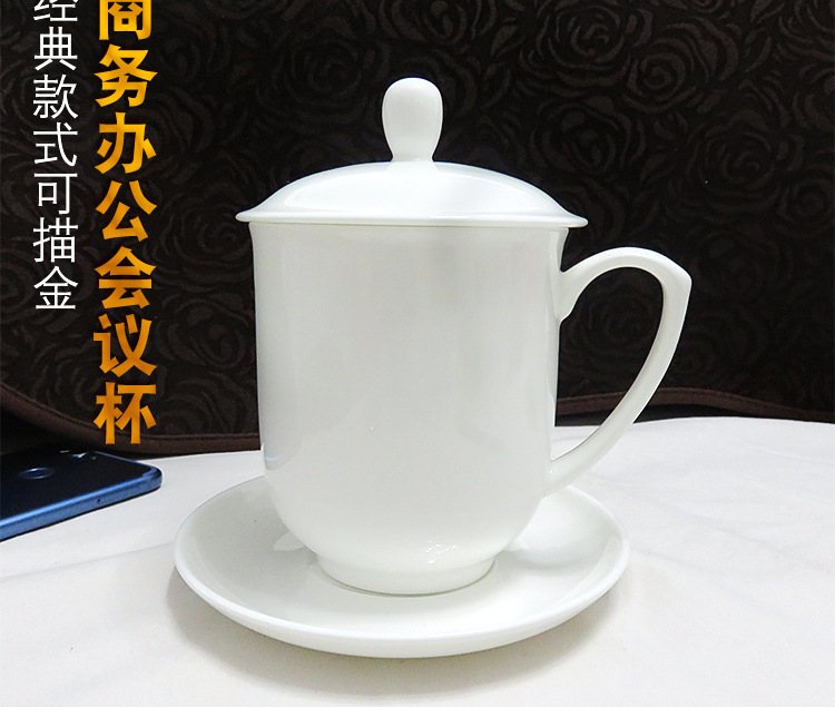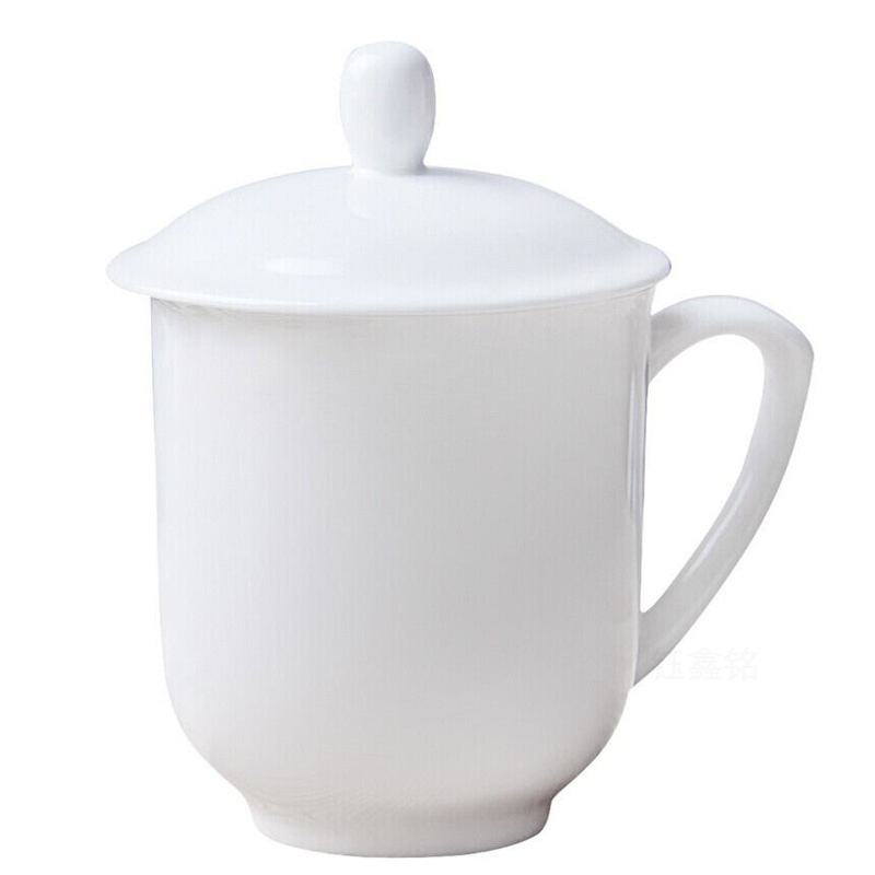 纯白大容量骨瓷会议盖杯商务办公水杯定做logo批发陶瓷办公会议杯