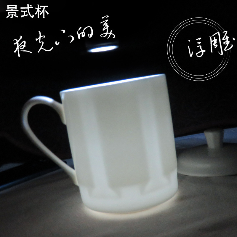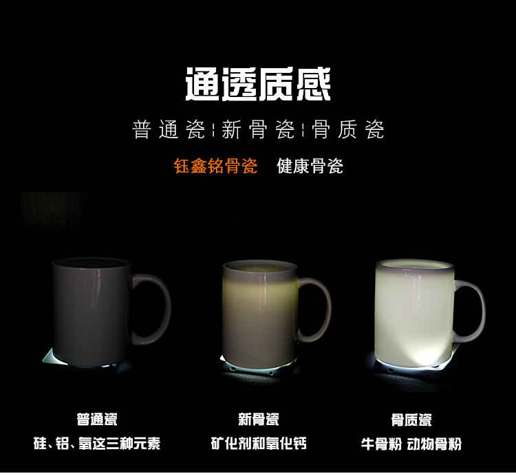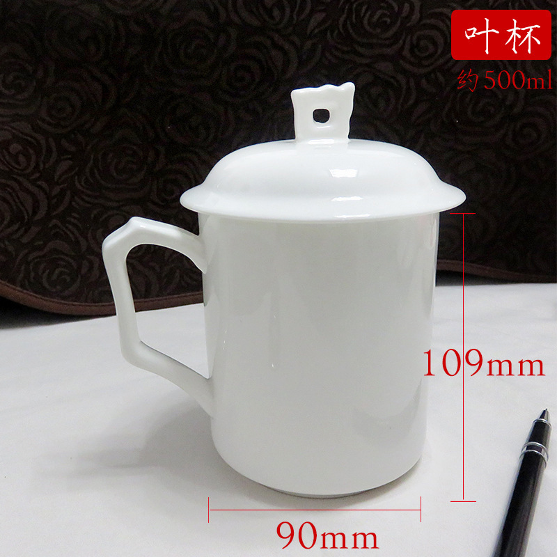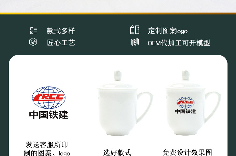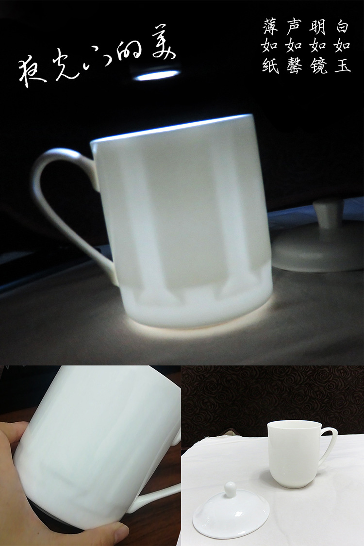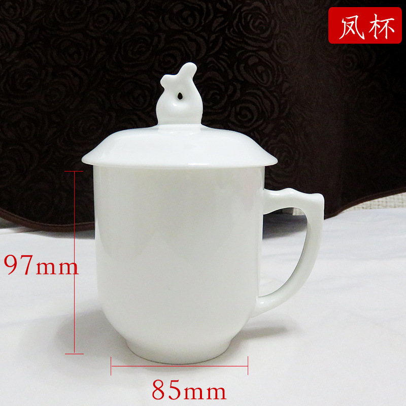 纯白大容量骨瓷会议盖杯商务办公水杯定做logo批发陶瓷办公会议杯