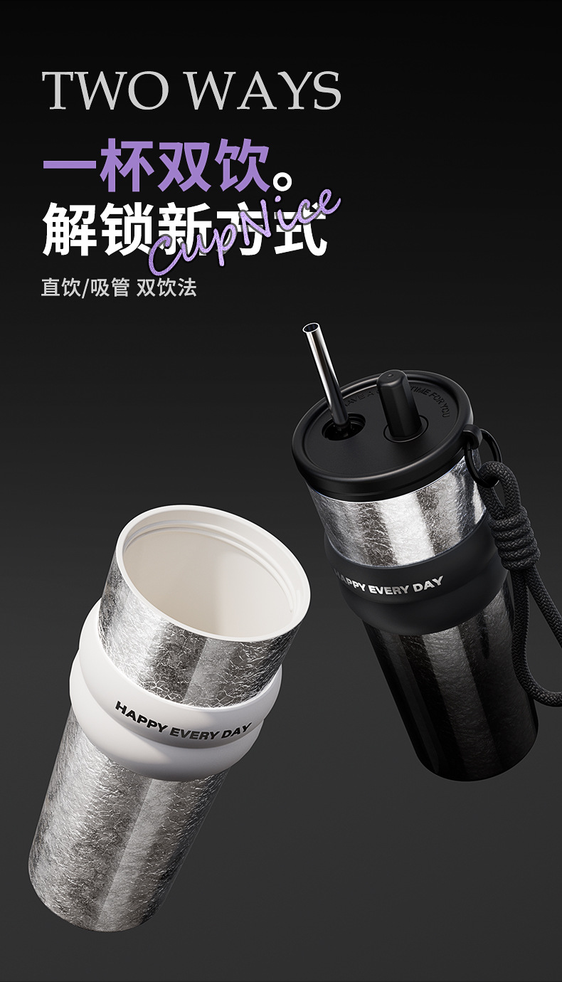大容量保温杯男生316不锈钢随行咖啡杯子女2025新款车载吸管水杯
