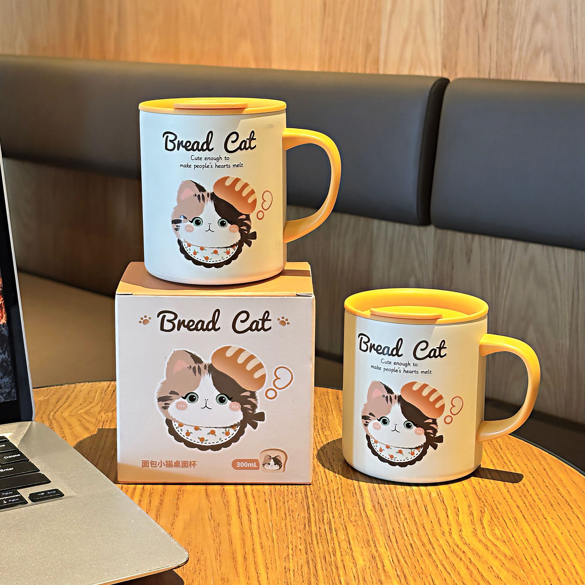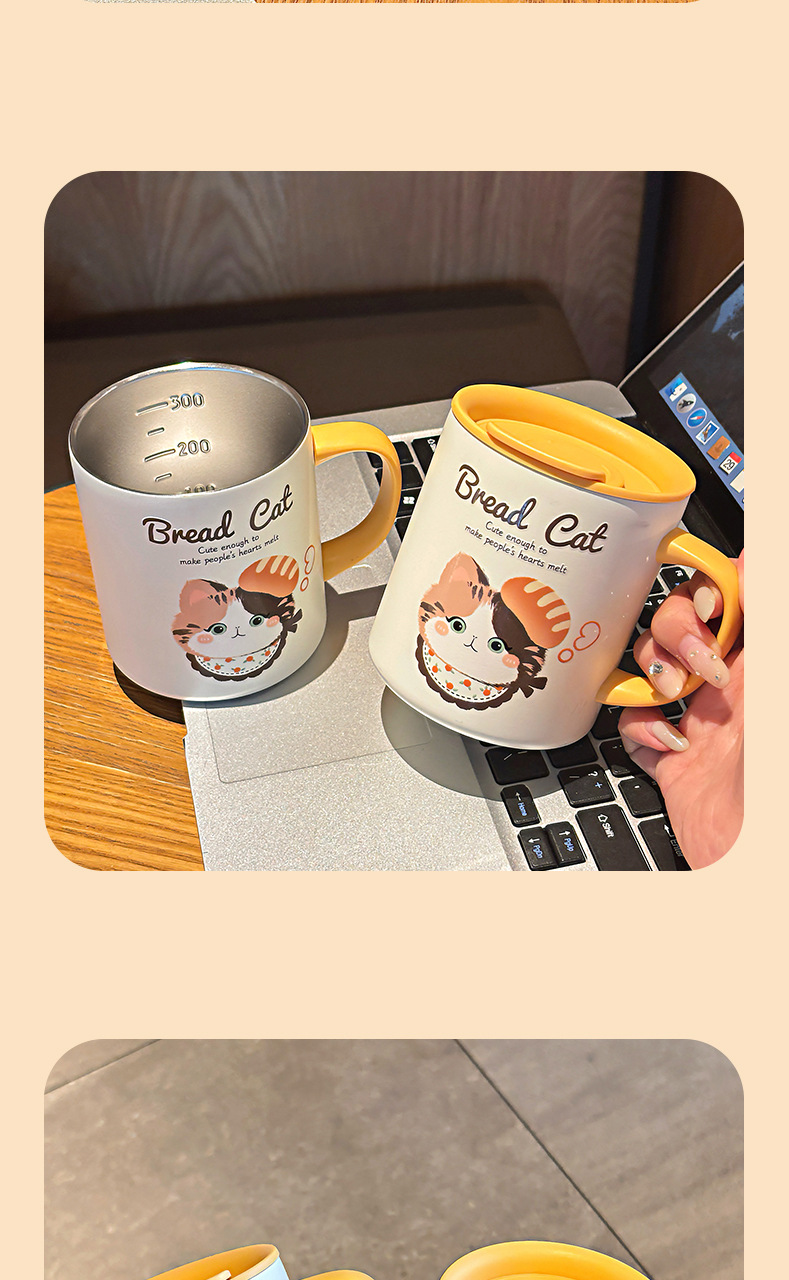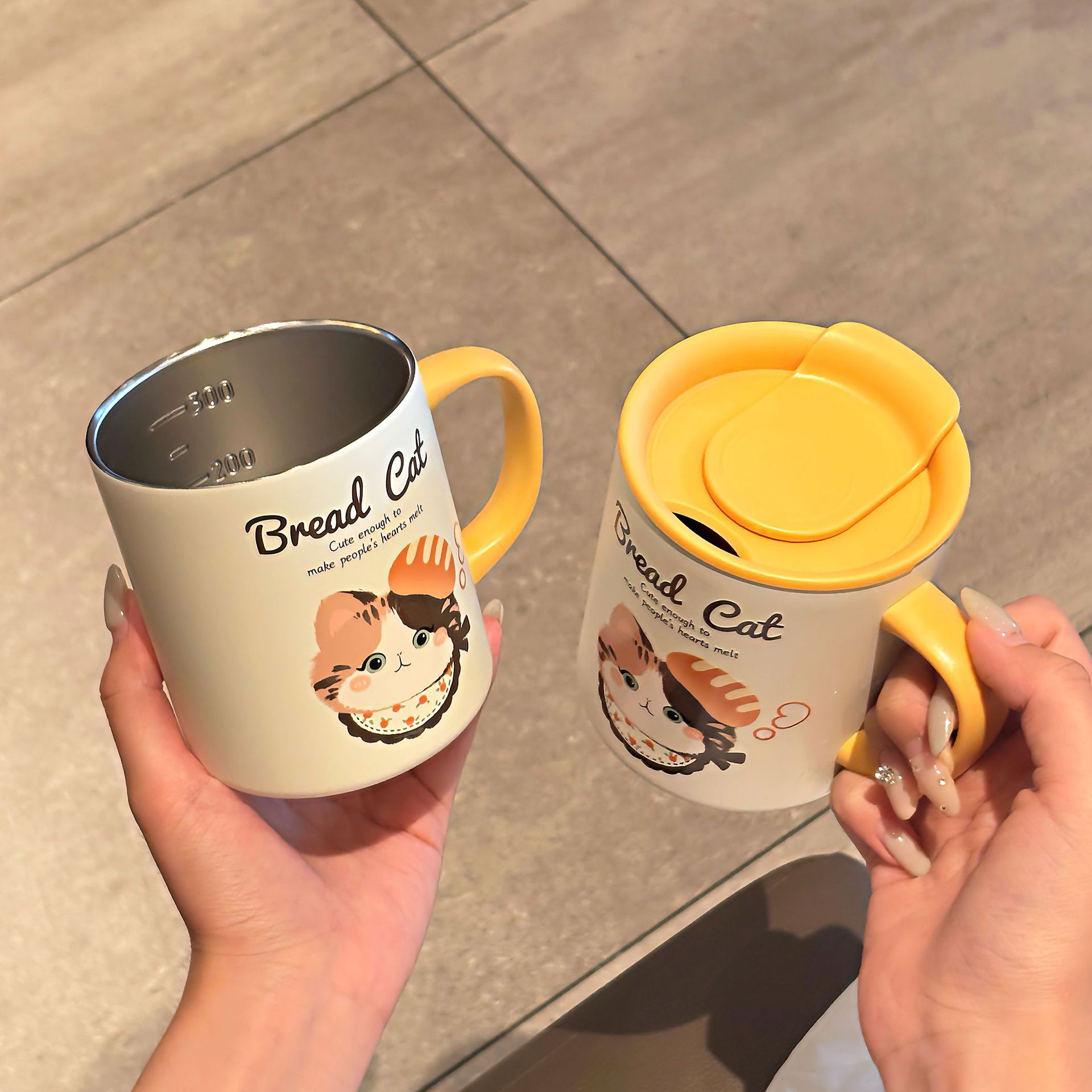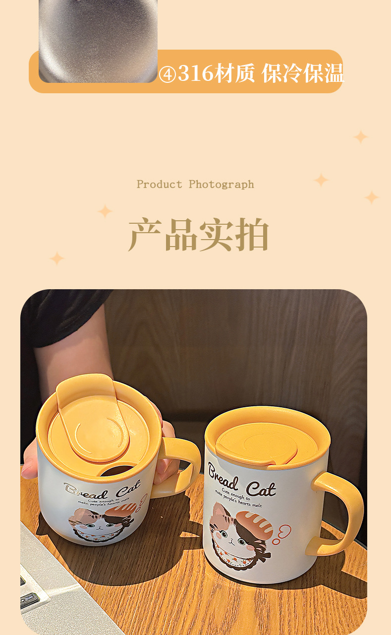 2025咖啡杯高颜值卡通面包小猫保温杯316不锈钢便携直饮杯口水杯