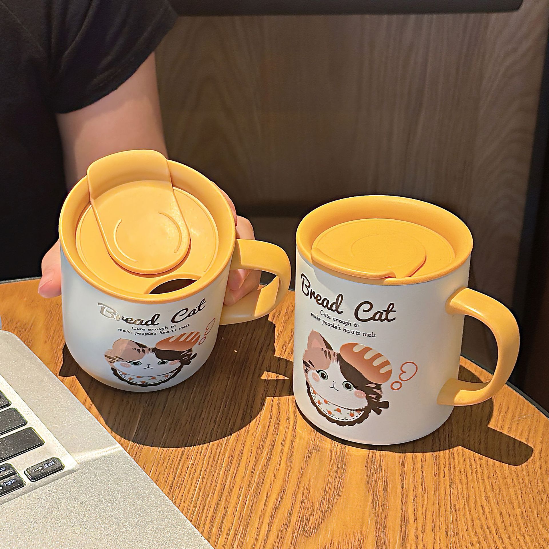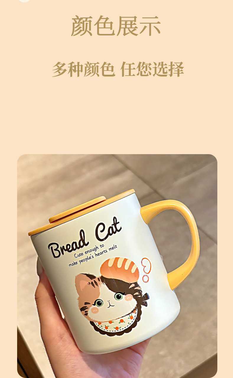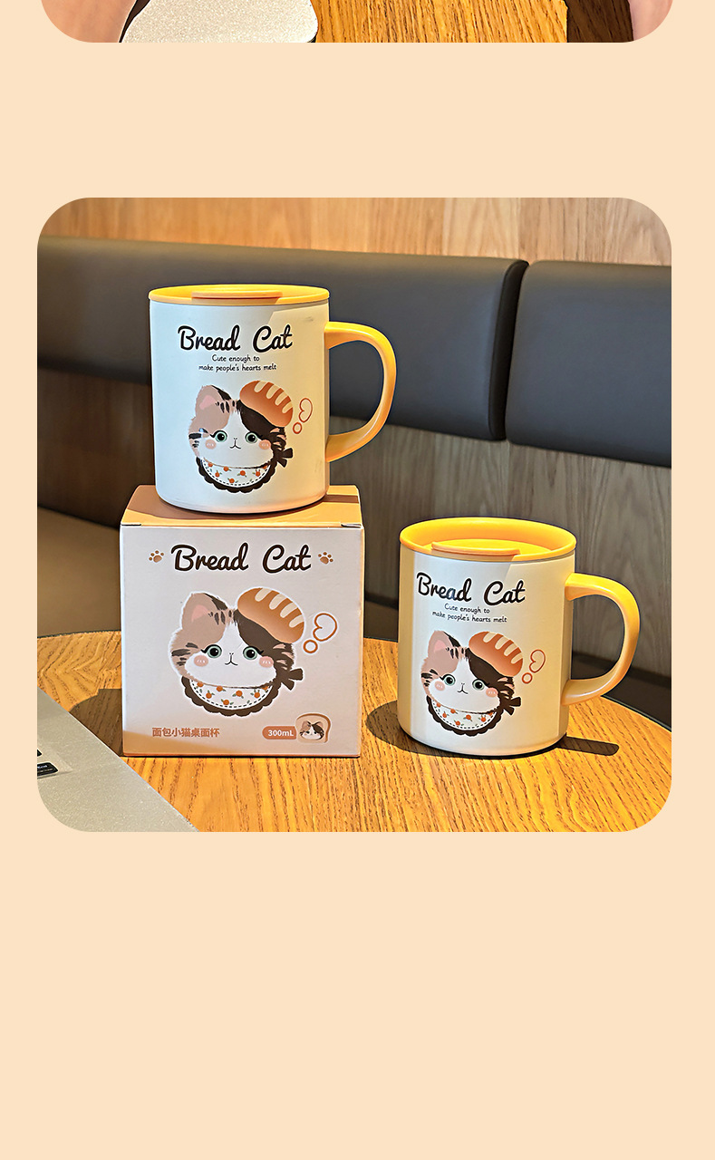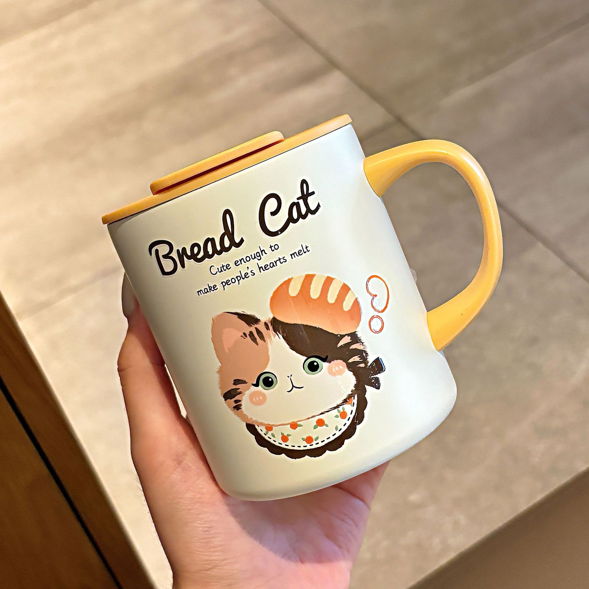 2025咖啡杯高颜值卡通面包小猫保温杯316不锈钢便携直饮杯口水杯