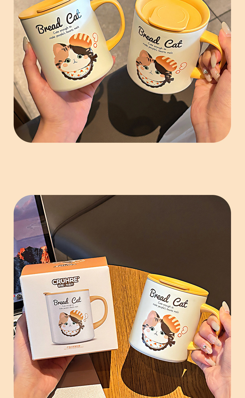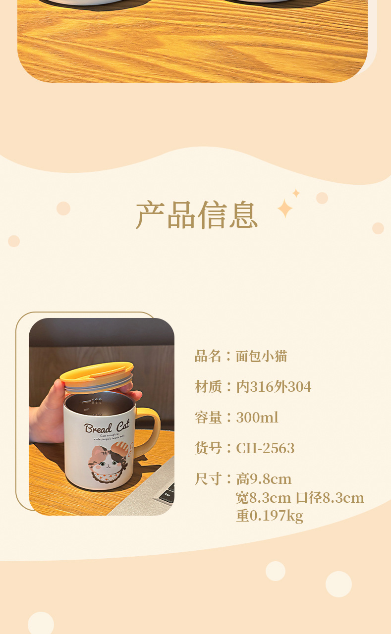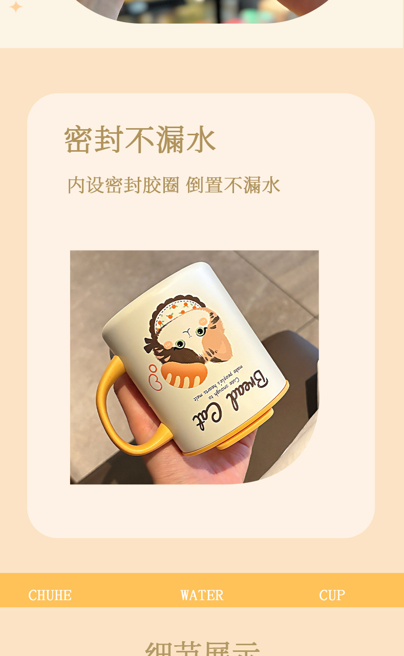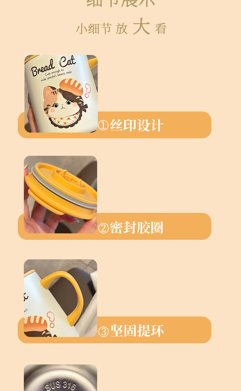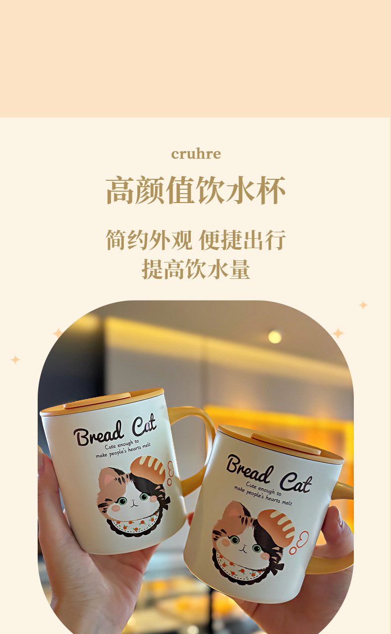 2025咖啡杯高颜值卡通面包小猫保温杯316不锈钢便携直饮杯口水杯