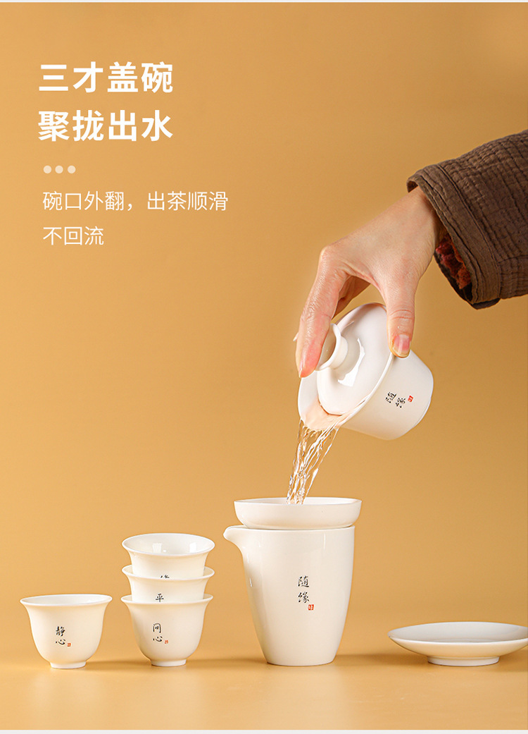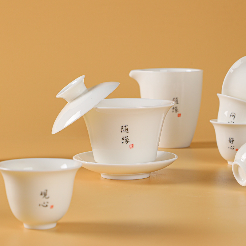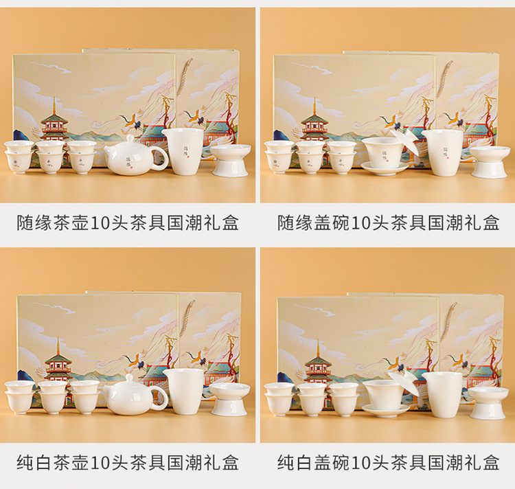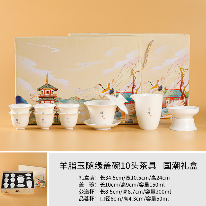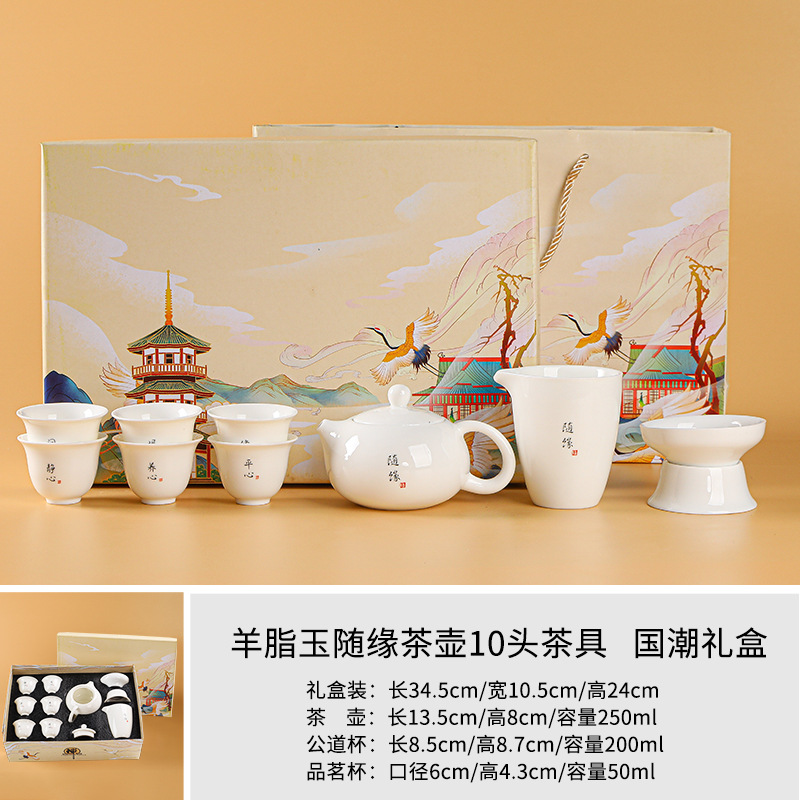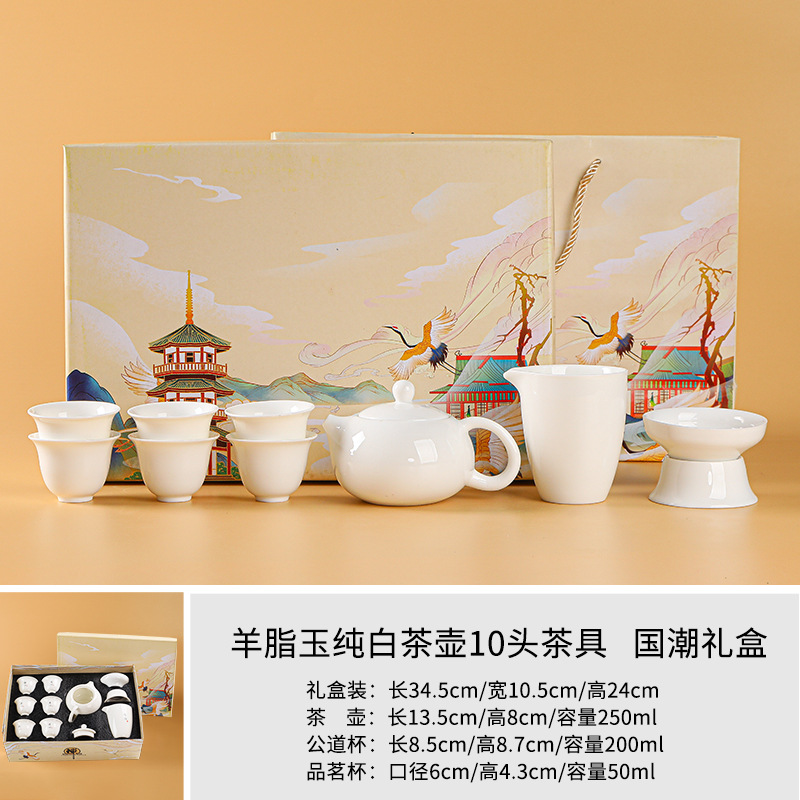 西施壶盖碗羊脂玉茶壶功夫茶具国潮礼盒家用办公高档商务礼品