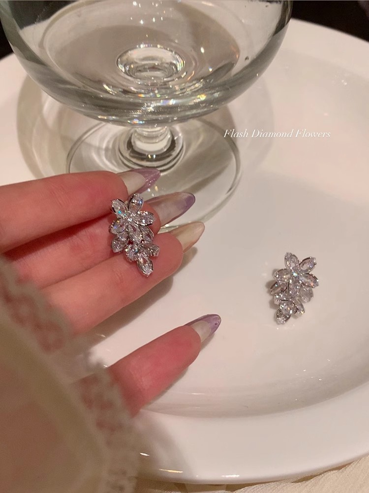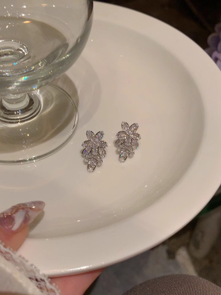 925银针精致锆石花朵耳环女新款2024爆款高级感耳饰百搭轻奢耳钉