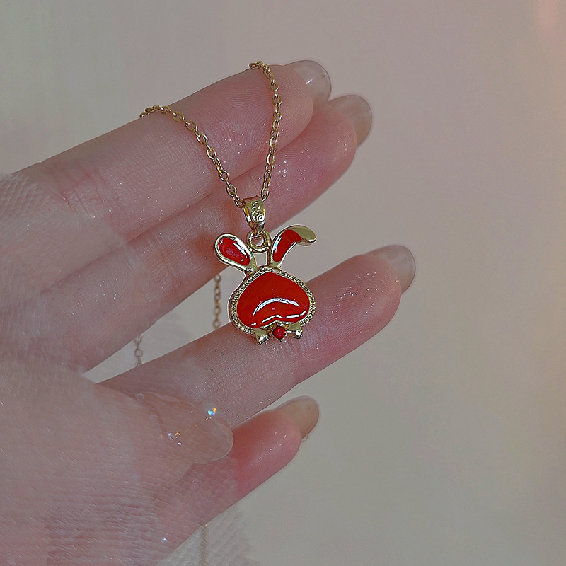 本命年红色兔子钛钢项链女轻奢网红个性气质锁骨链高级感颈链配饰