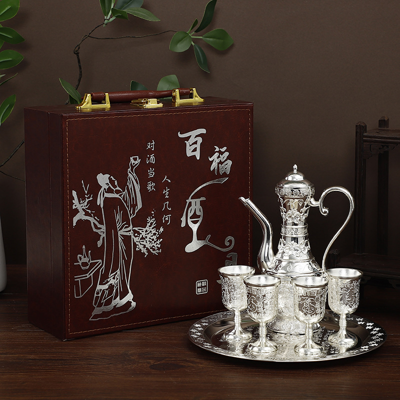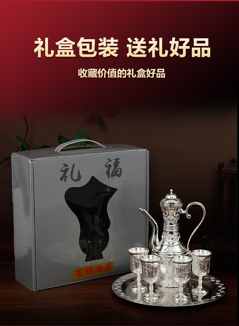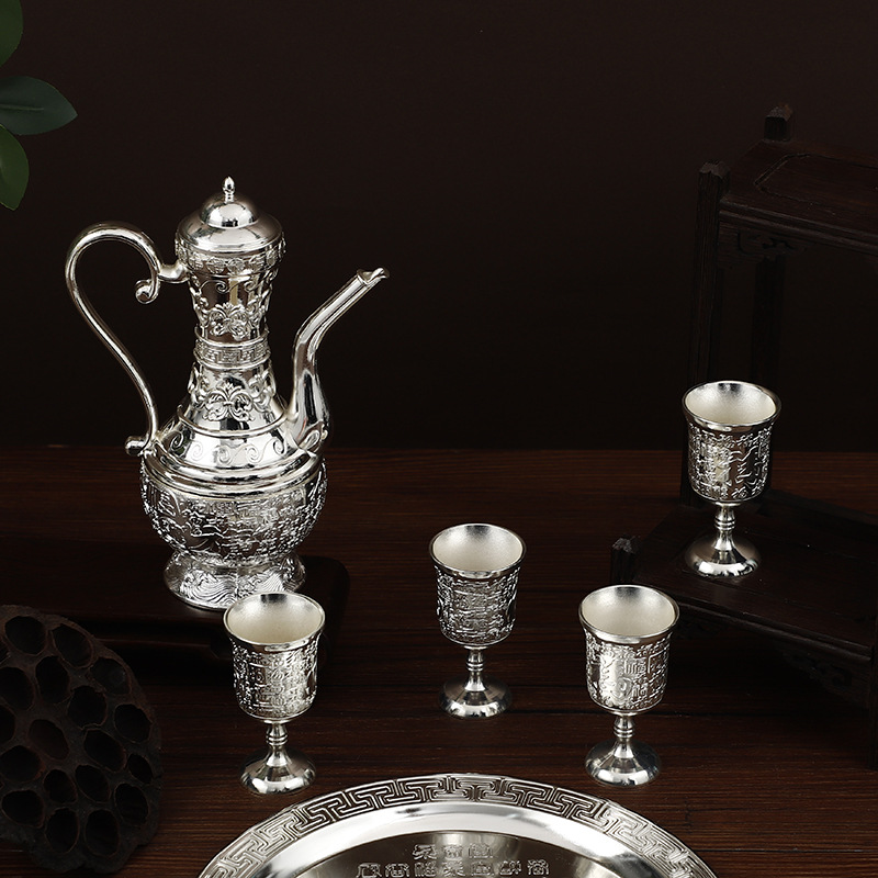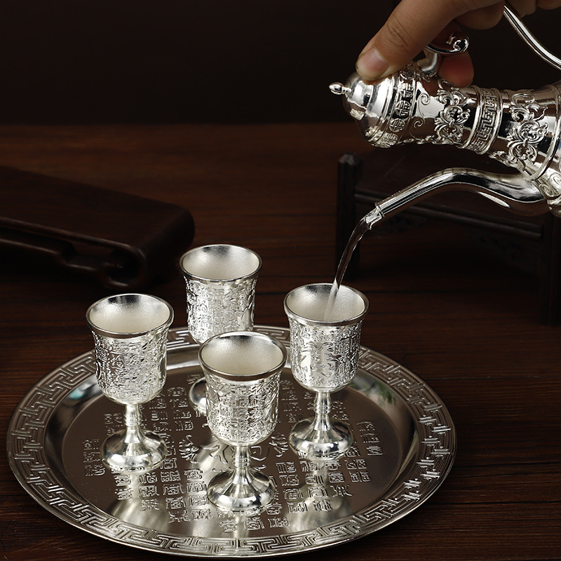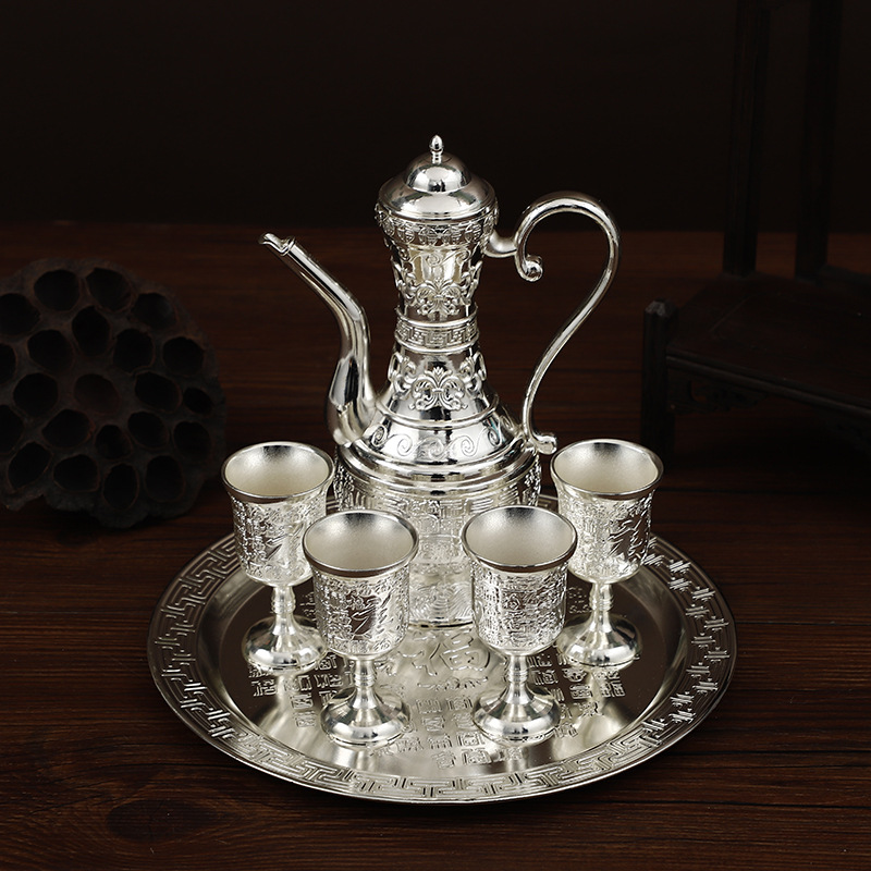 古中式家用酒壶镀银酒具套装红酒杯酒壶纯银家用欧式送礼佳品