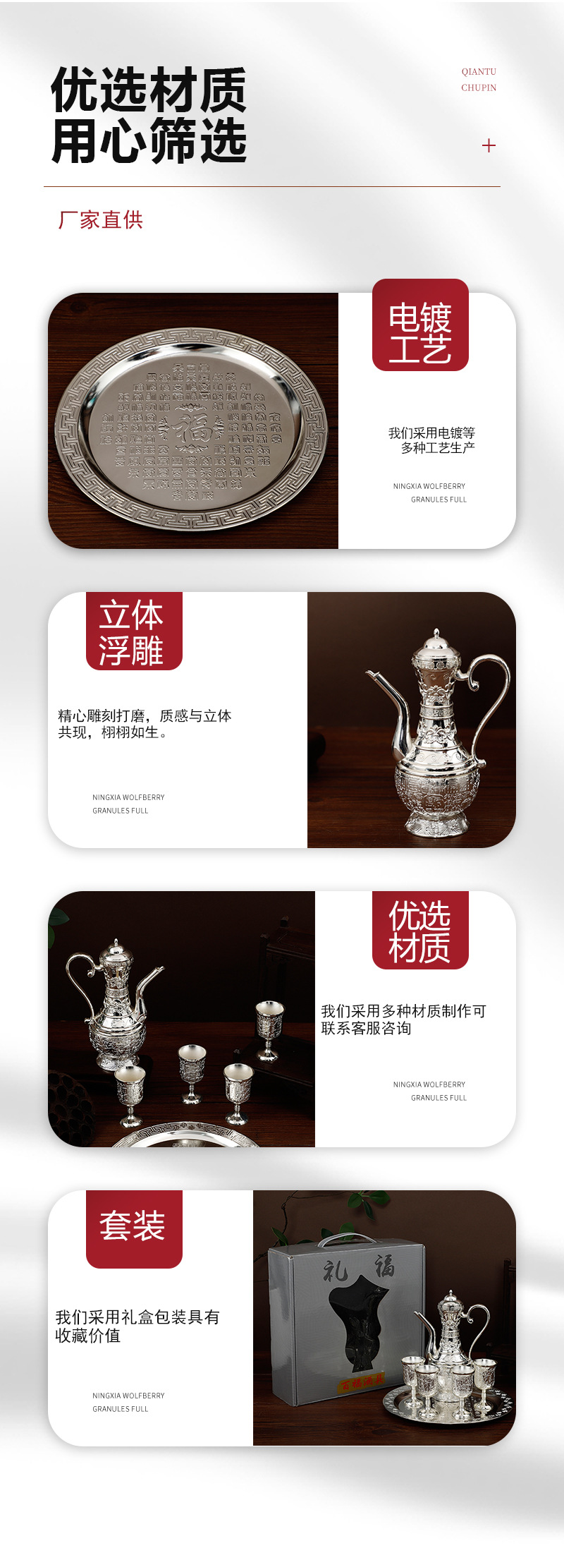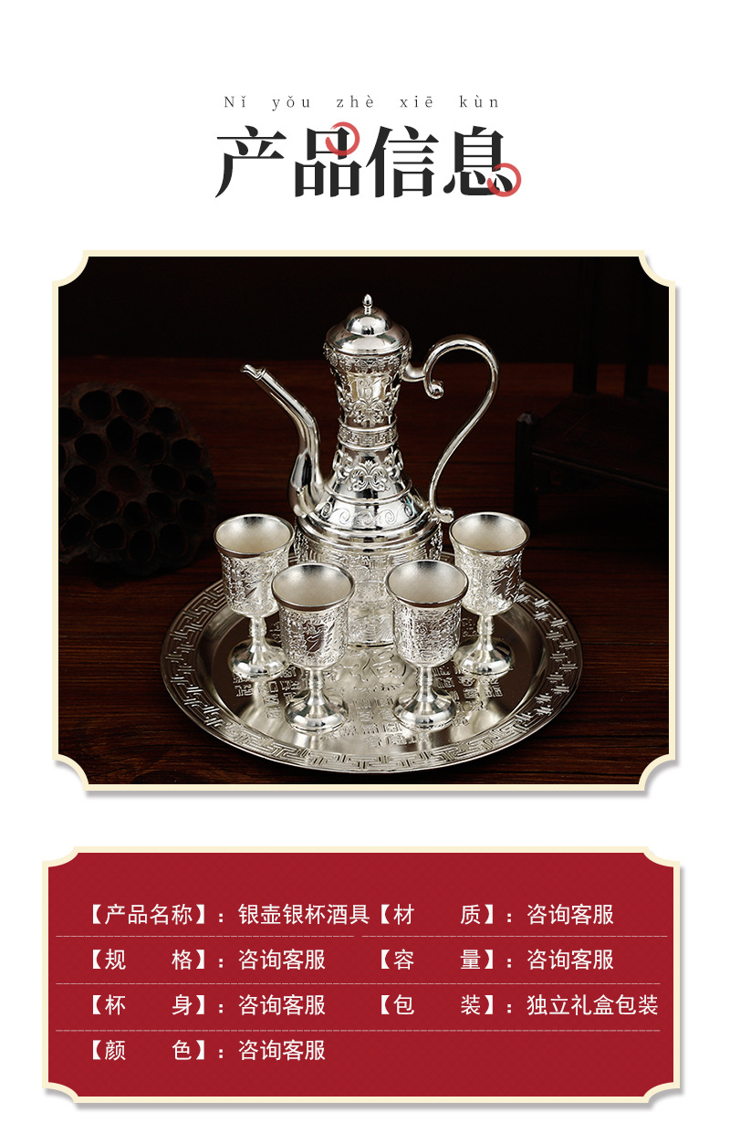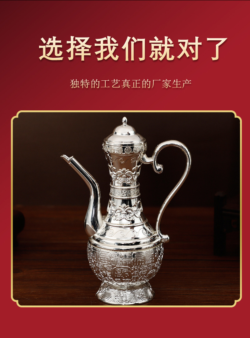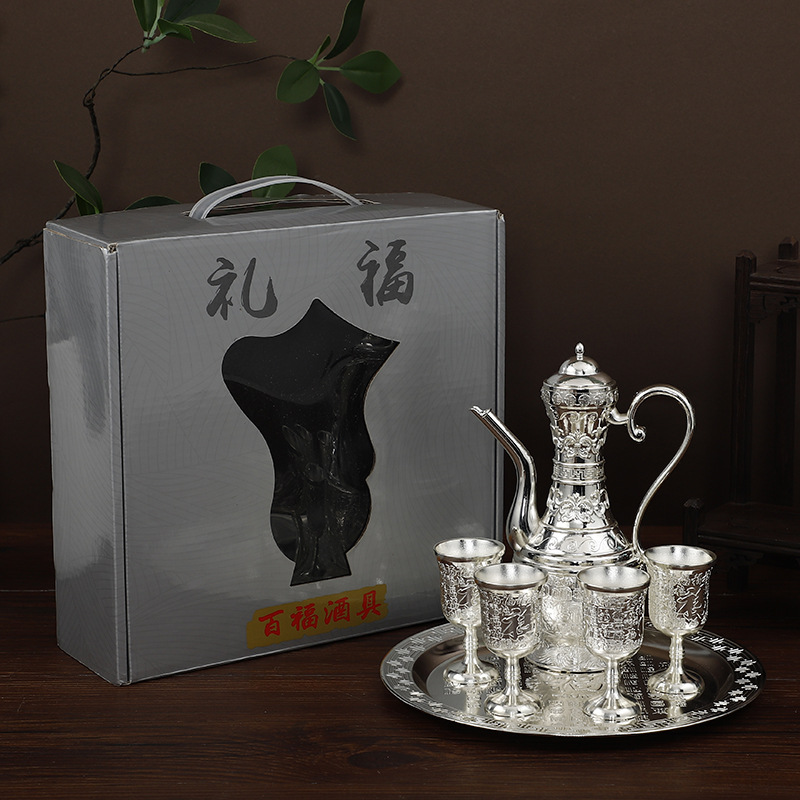 古中式家用酒壶镀银酒具套装红酒杯酒壶纯银家用欧式送礼佳品