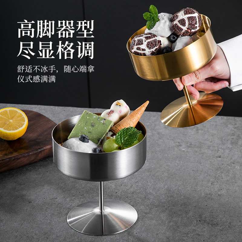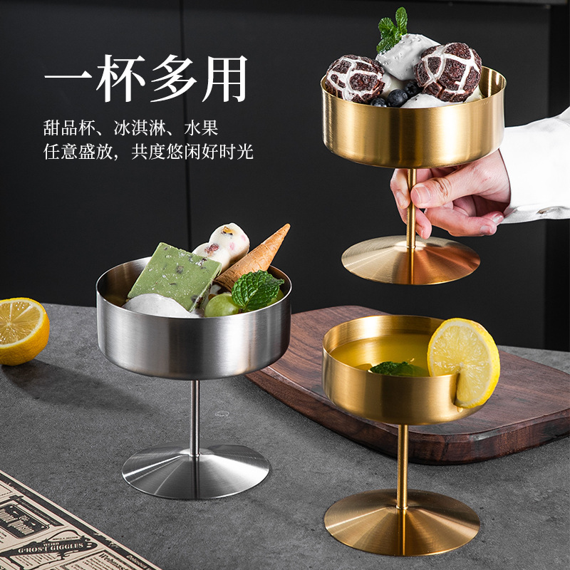 布丁杯冰淇淋杯雪糕杯304不锈钢高脚杯调酒杯雪球沙拉甜品小吃碗