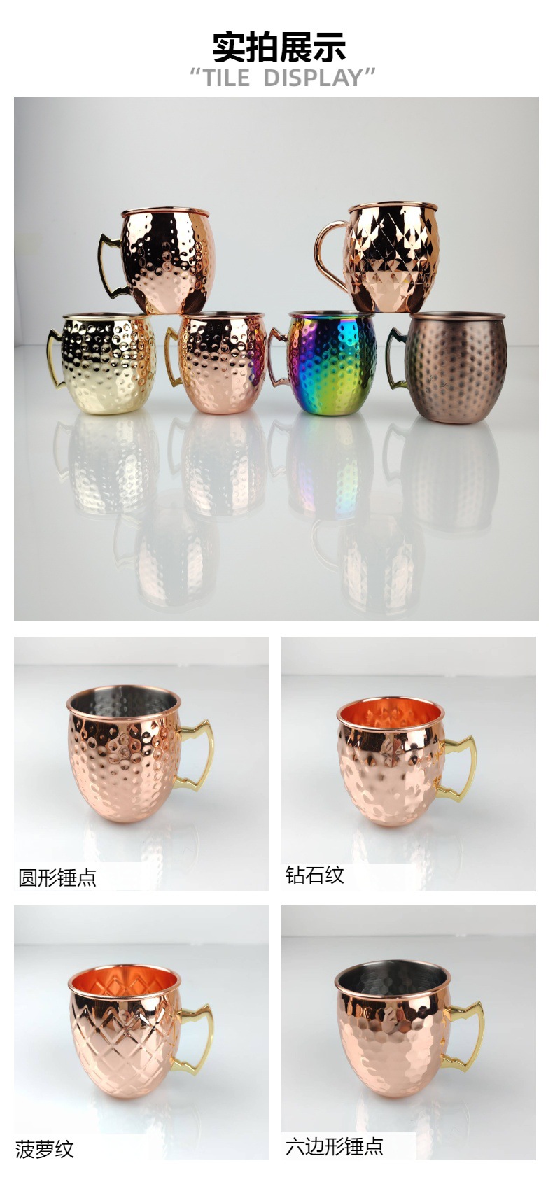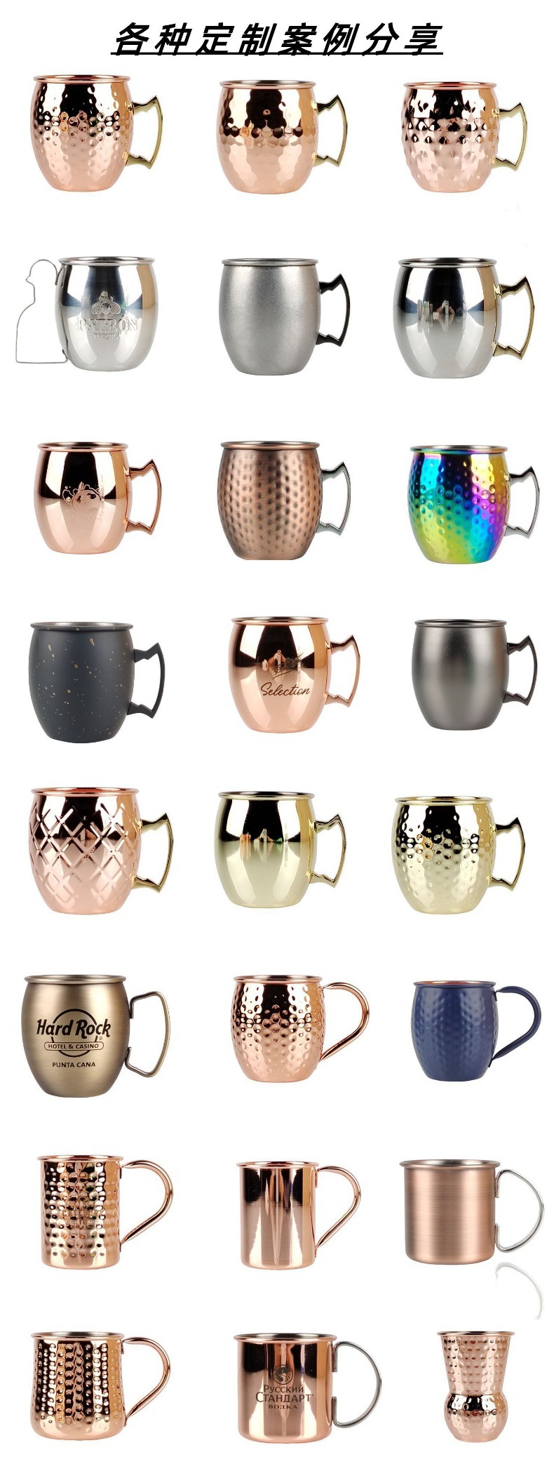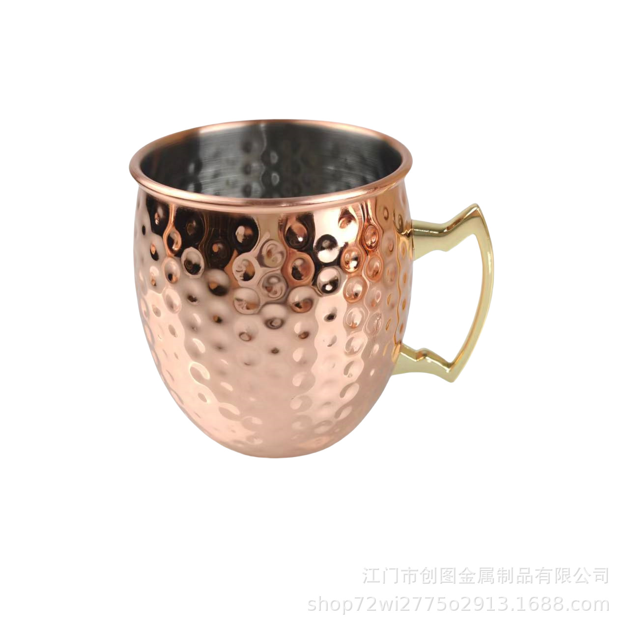 跨境不锈钢莫斯科骡子杯锤点鼓形杯欧式鸡尾酒杯不锈钢镀铜啤酒杯