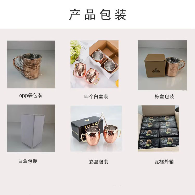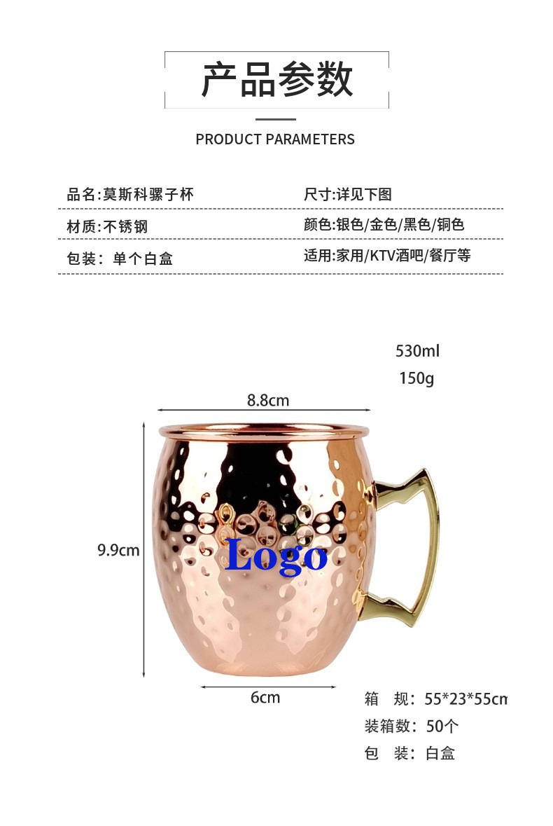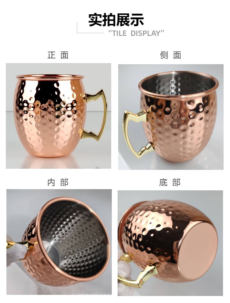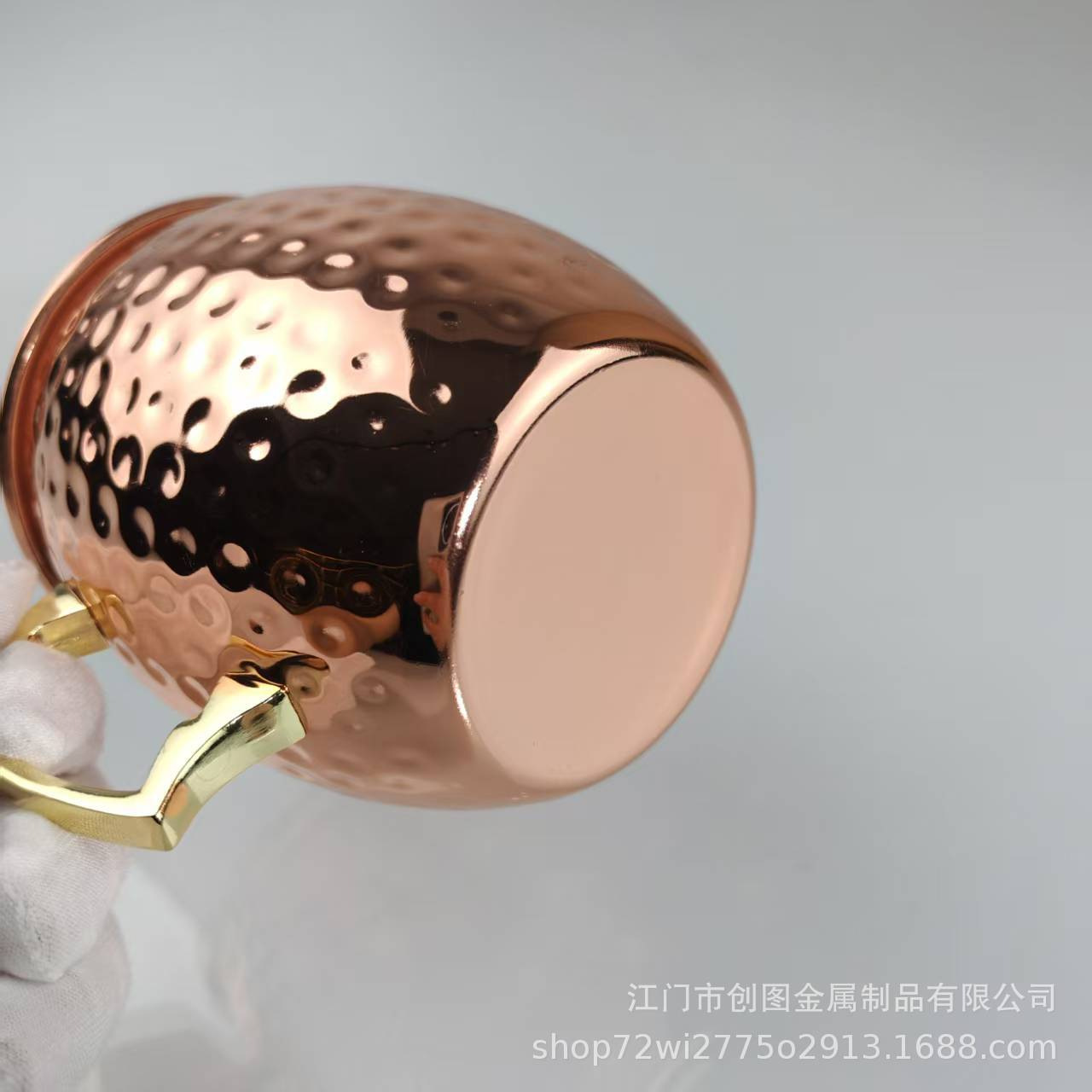 跨境不锈钢莫斯科骡子杯锤点鼓形杯欧式鸡尾酒杯不锈钢镀铜啤酒杯