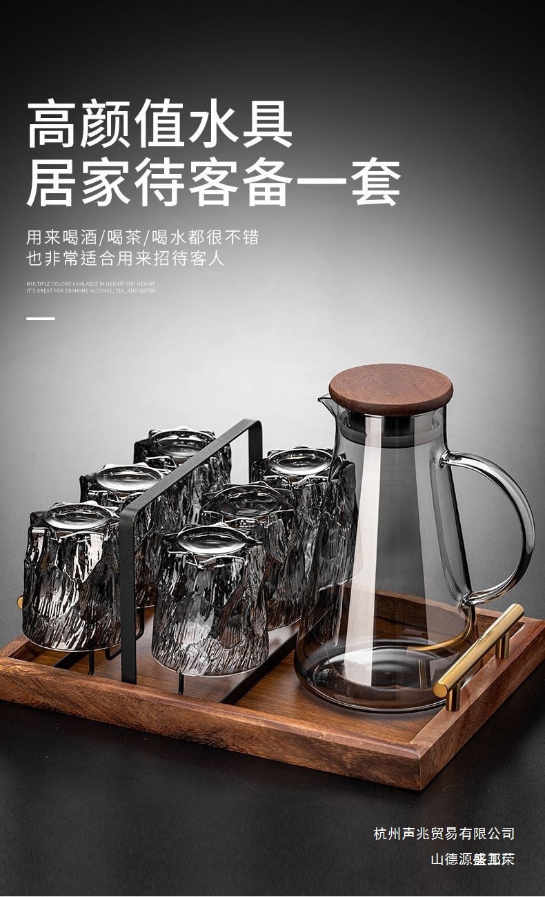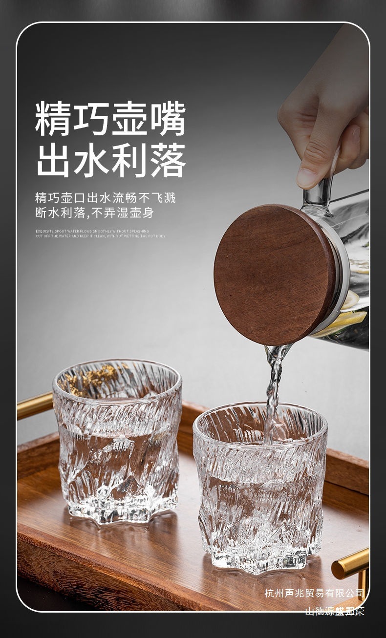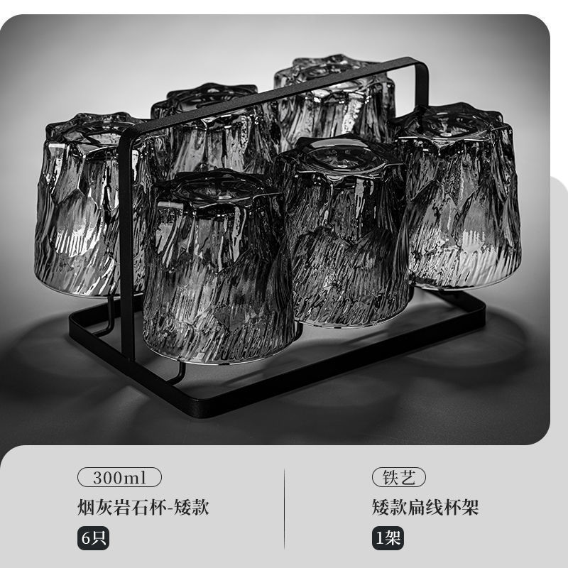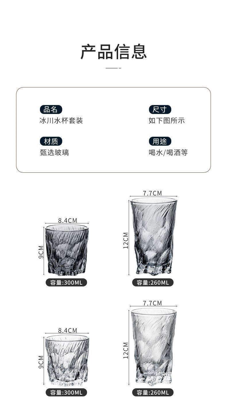复古浮冰川玻璃杯水杯子家用待客喝水套装高当家用商用默认项中式