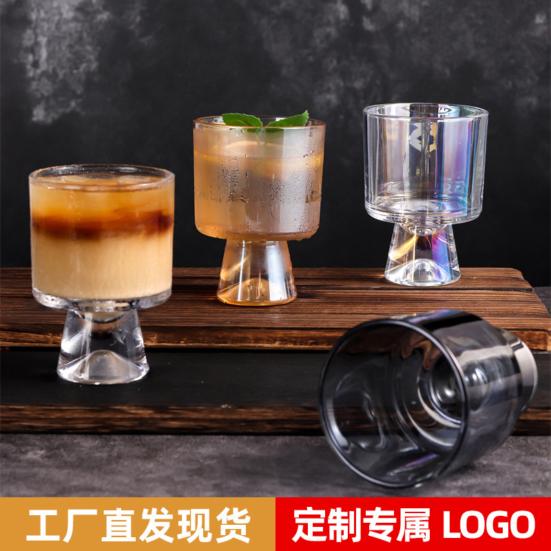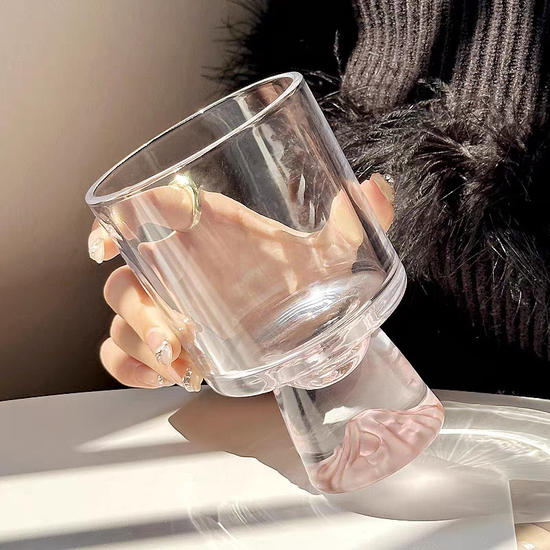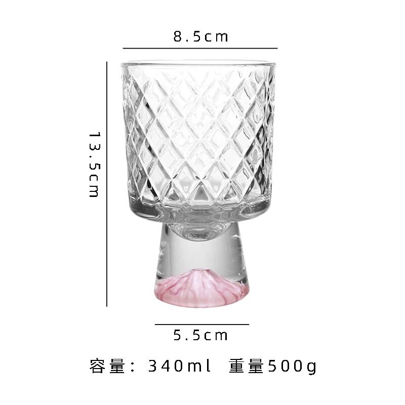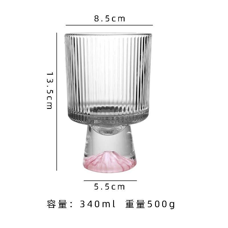 粉色山脉玻璃杯日式观山杯网红雪山底咖啡杯家用甜筒杯冰淇淋杯子