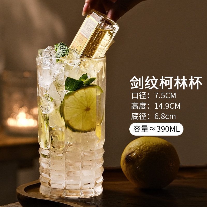 日式柯林杯轻薄酒吧直身杯长饮玻璃杯调酒杯海波长岛冰茶鸡尾批发