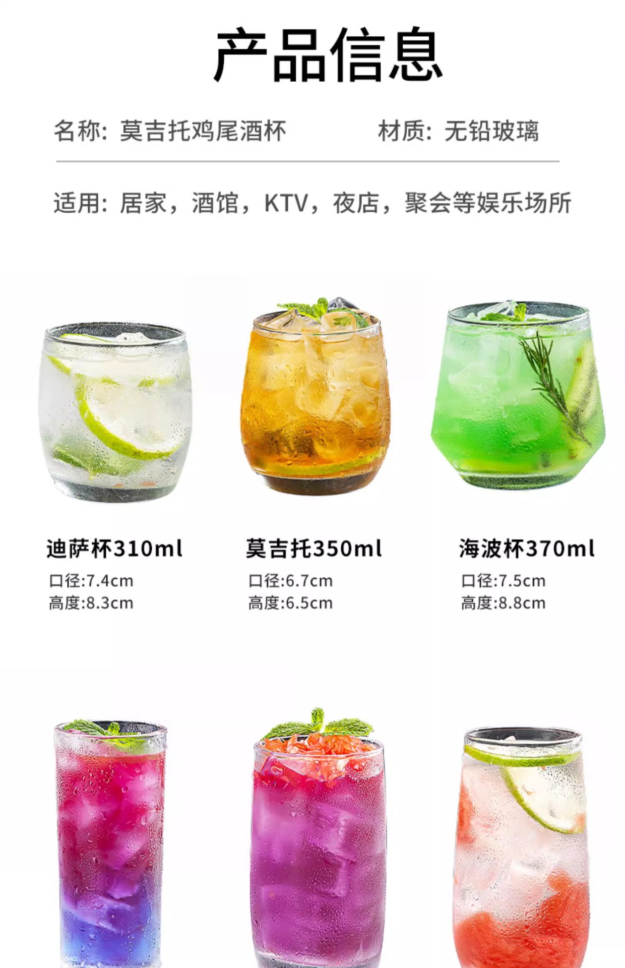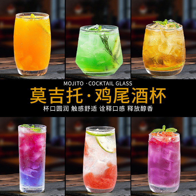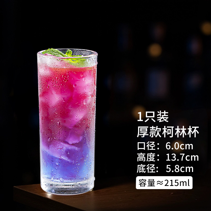 日式柯林杯轻薄酒吧直身杯长饮玻璃杯调酒杯海波长岛冰茶鸡尾酒杯