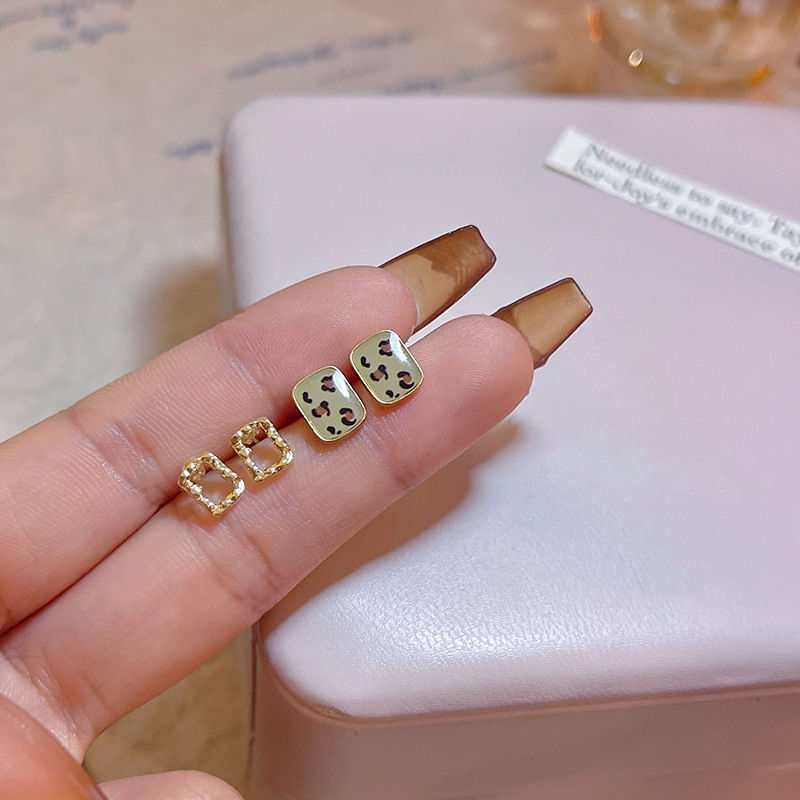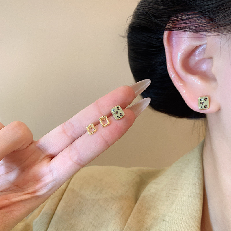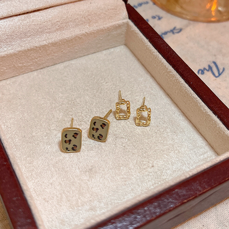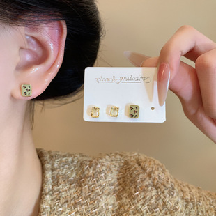 复古法式豹纹小方块耳钉女2025年新款气质高级感独特耳环爆款耳饰