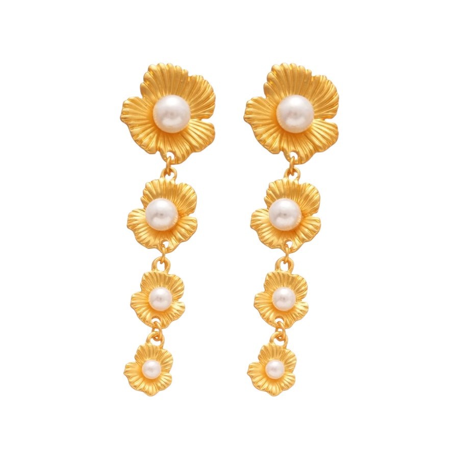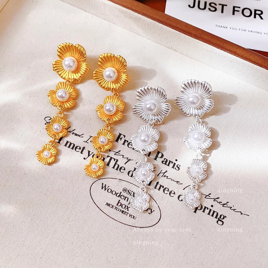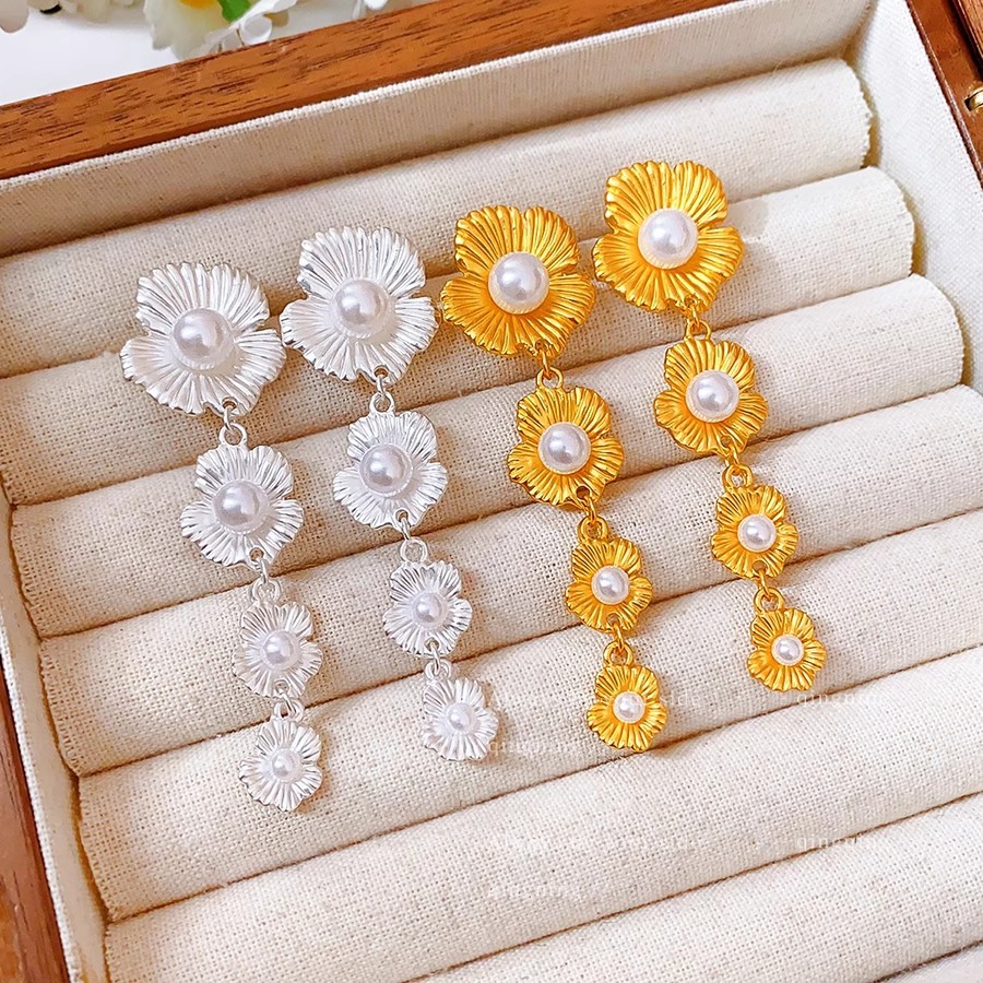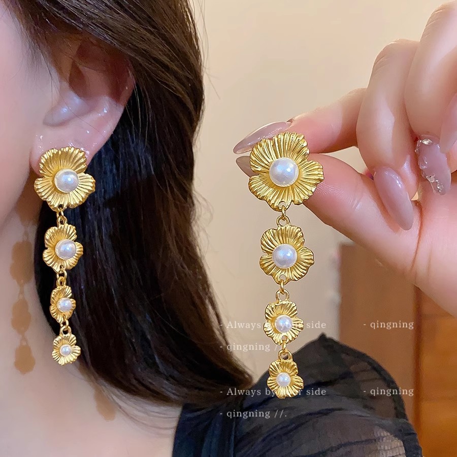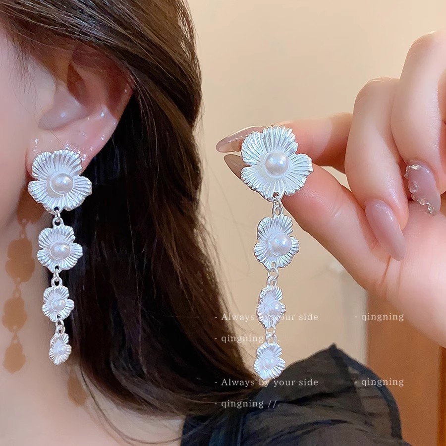 欧美夸张长款花朵流苏耳环女时尚小众轻奢高级百搭珍珠耳钉耳饰品