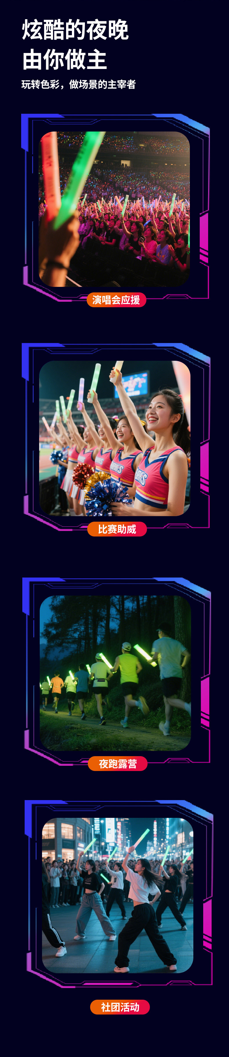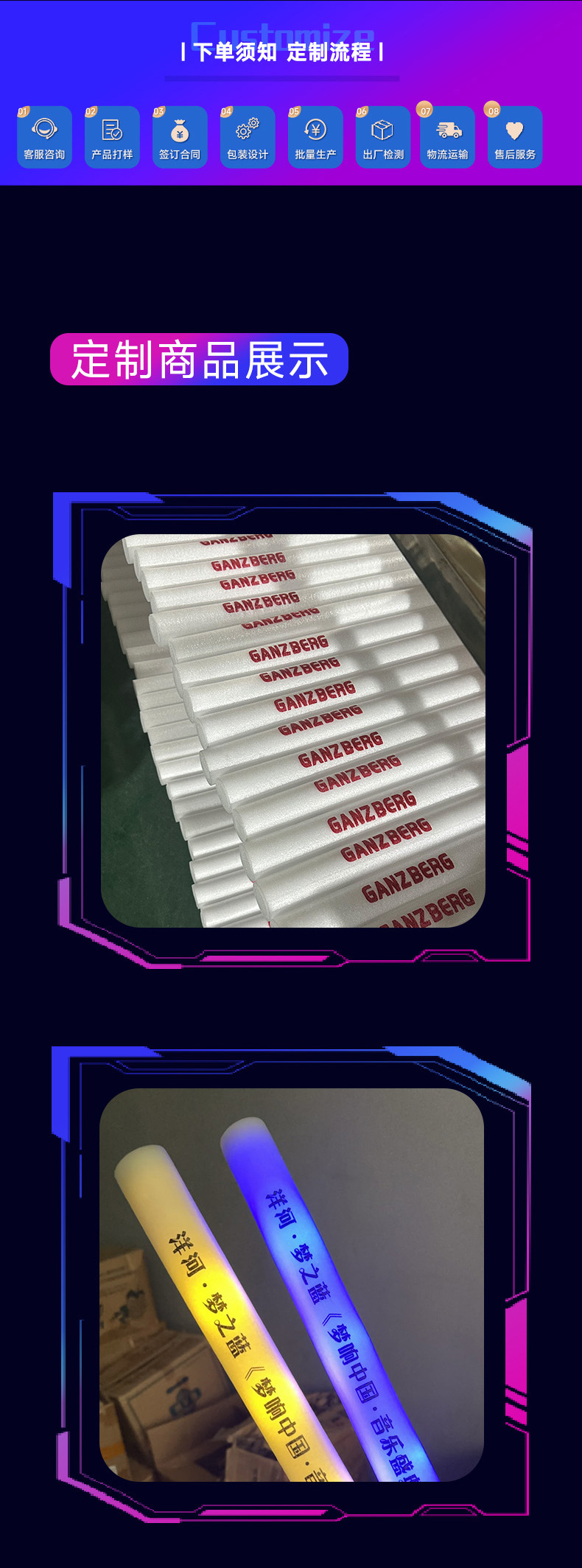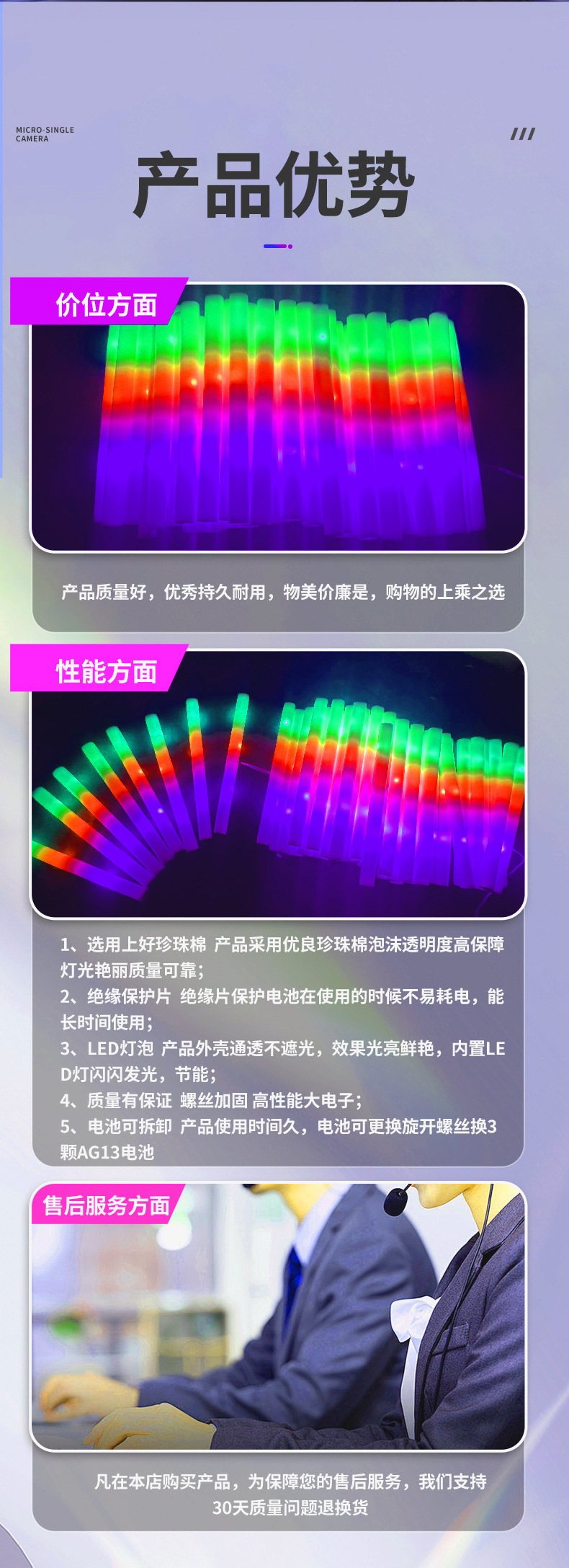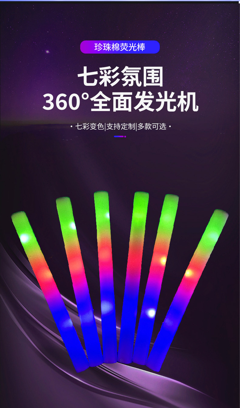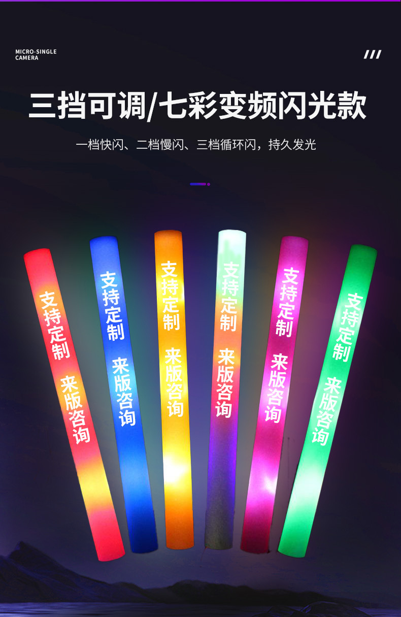 海绵荧光棒批量发光七彩荧光棒泡沫应援助威道具演唱会荧光棒批发