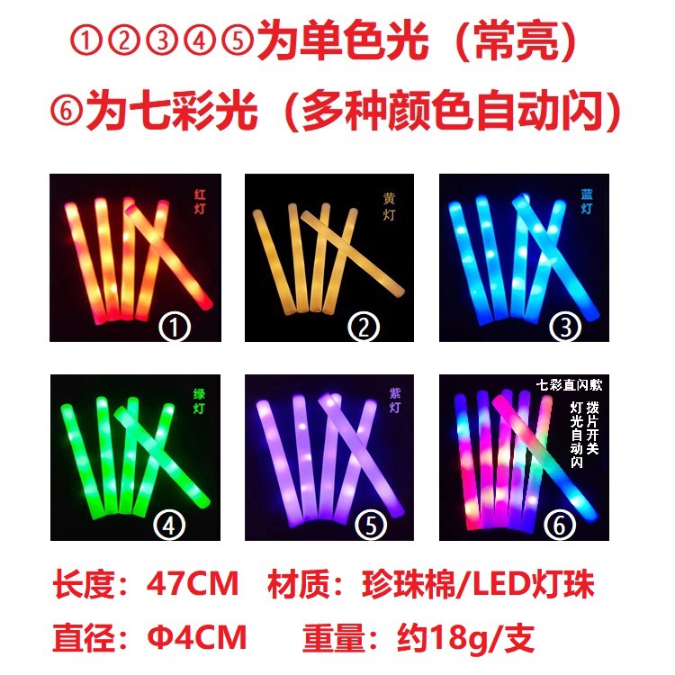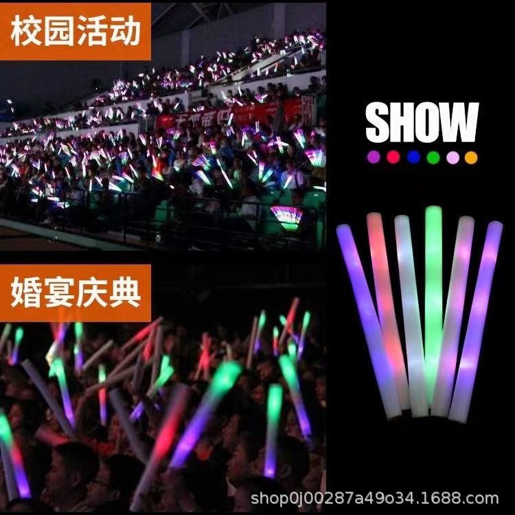 七彩海绵荧光棒发光演唱会应援 酒吧泡沫夜光棒闪光棒发光棒气氛
