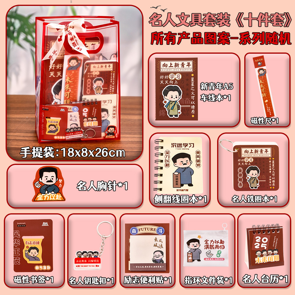 新青年励志名人文具套装 学生高颜值文具生日礼品开学季全班奖品