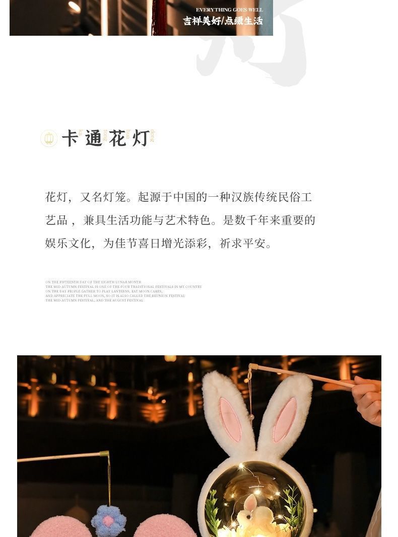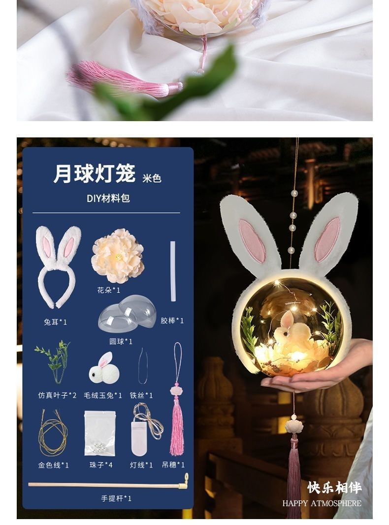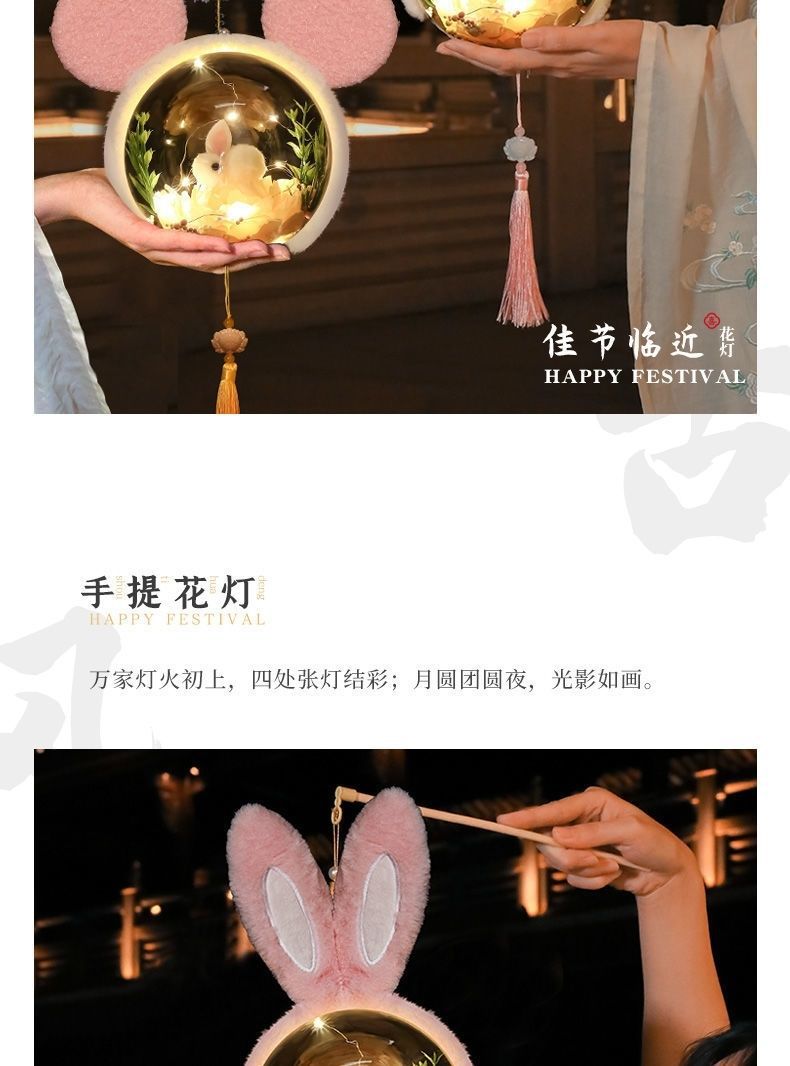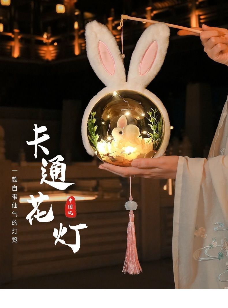 2025新款韩版中秋灯笼儿童diy手工手提兔子小夜灯星黛露花灯摆摊